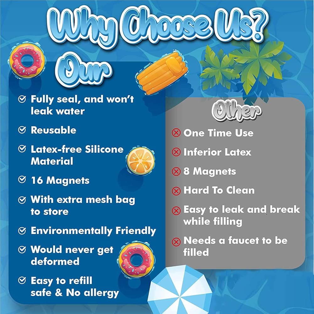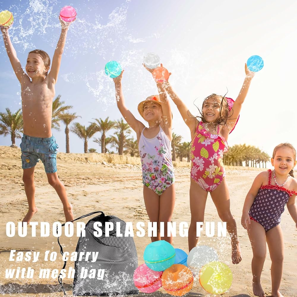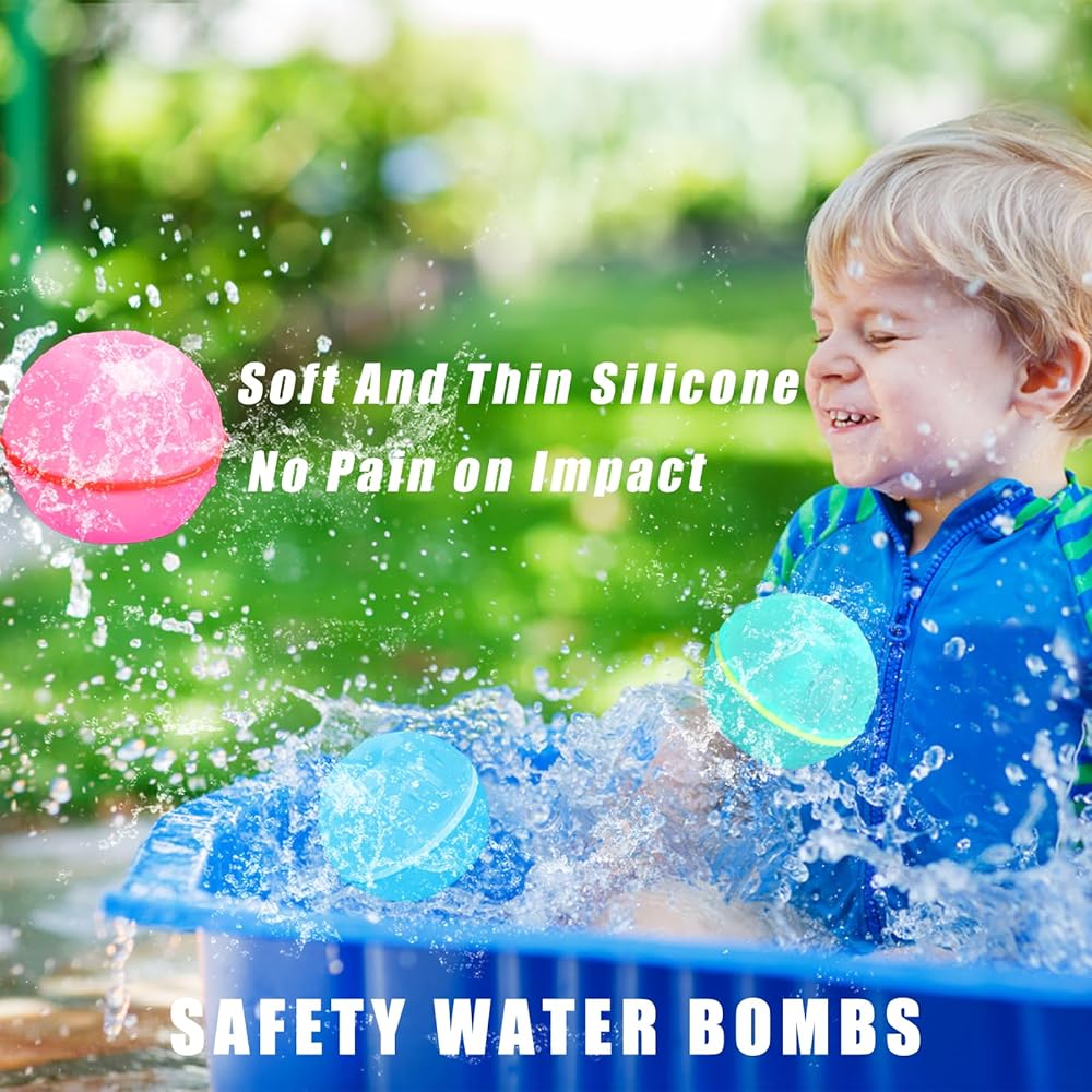 【REUSABLE AND DURABLE】Made from food-grade silicone, these water balloons are environmentally friendly and can be reused multiple times thanks to their magnetic closure, And also these refillable water balloons are durable and reliable, able to be thrown as far as you want without fear of damage, making them a cost-effective choice.