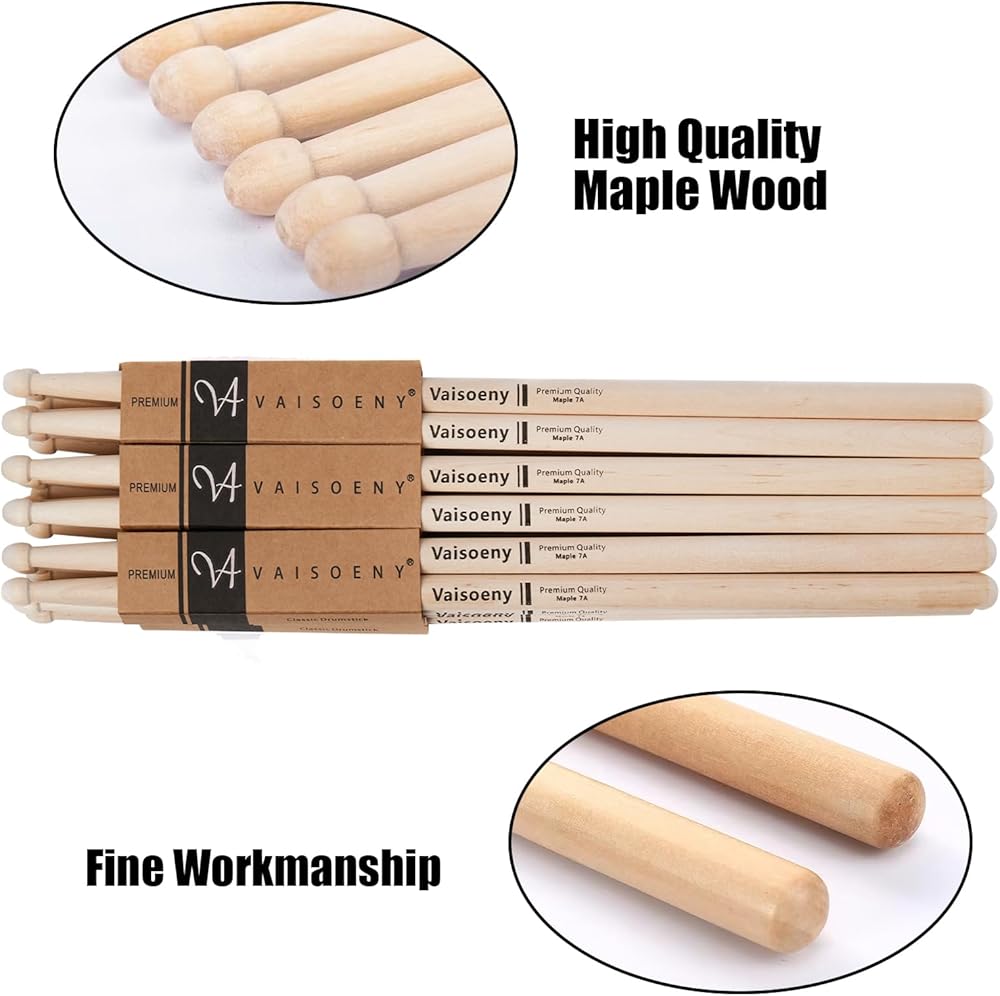 الكمية: تحتوي العبوة على 12 زوجًا من أعواد الطبل الخشبية، وعصي طبلة القيقب 7A هذه تناسب جميع الطبول، بما يكفي لتلبية احتياجاتك المختلفة.