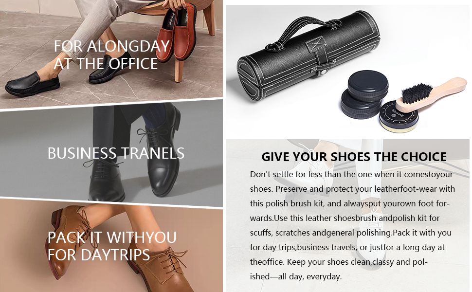 Perfect Travel Kit: With the larger brushes and 50ml shoe polish tins there is no compromise on quality while still offering the size and weight suitable for travelling light.
