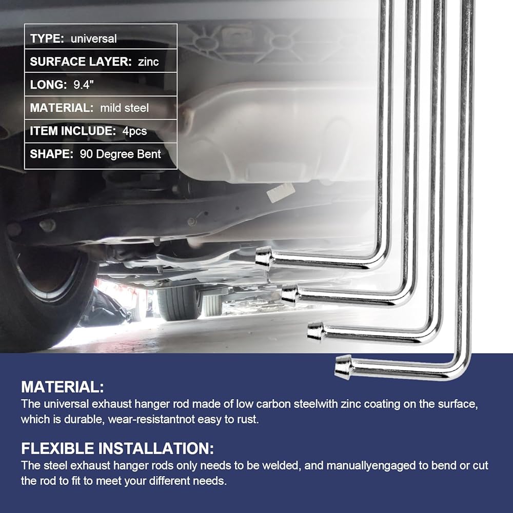 FMTYAOIU Exhaust Hanger Rods Universal Exhaust System Hanger Kit - Can be used to attach exhaust systems or components such as racing, and modified exhaust welding hookups. Reliable material is solid and sturdy to use, so you can use it for a long time without blending, fading, breaking or deformation. Flexible Installation: The exhaust hanger rods 9.4" only needs to be welded, and manually engaged to bend or cut the rod to fit to meet your different needs.