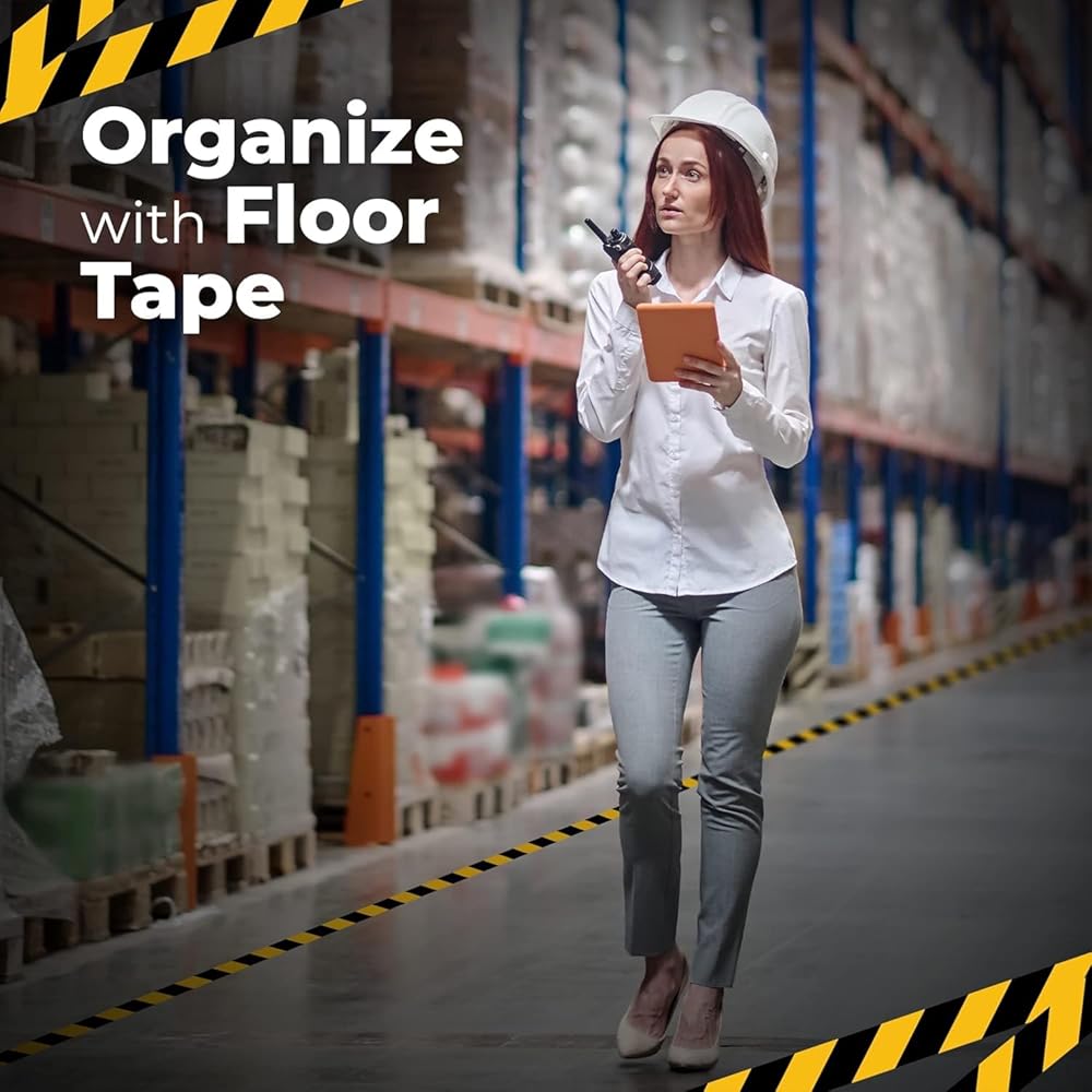 🚧 𝐌𝐔𝐋𝐓𝐈𝐏𝐋𝐄 𝐅𝐔𝐍𝐂𝐓𝐈𝐎𝐍𝐀𝐋: يمتلك هذا الشريط الأرضي متعدد الأغراض غير القابل للانزلاق العديد من التطبيقات. يمكن استخدامه للأغراض الصناعية، وديكورات الهالوين، ومناطق وضع العلامات لمنع الوصول إلى مواقع الطوارئ، وتجميع الأشياء ووضع علامات على السلالم.