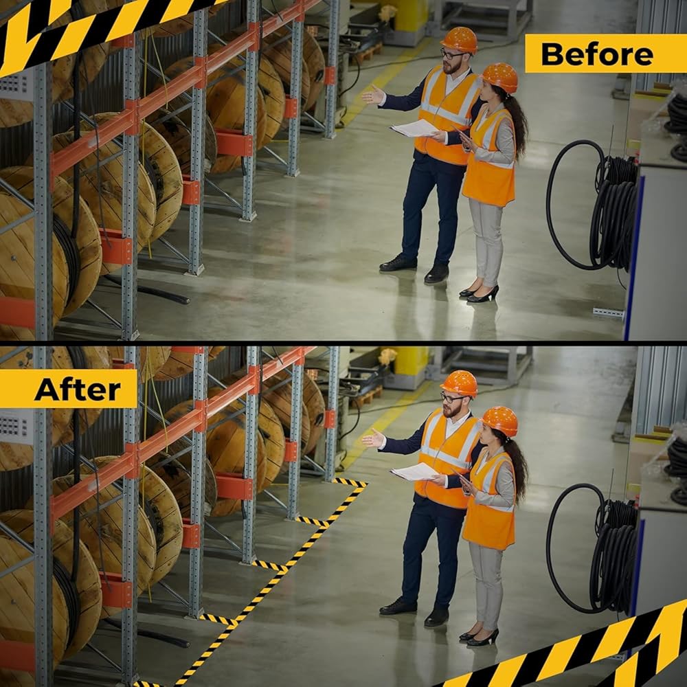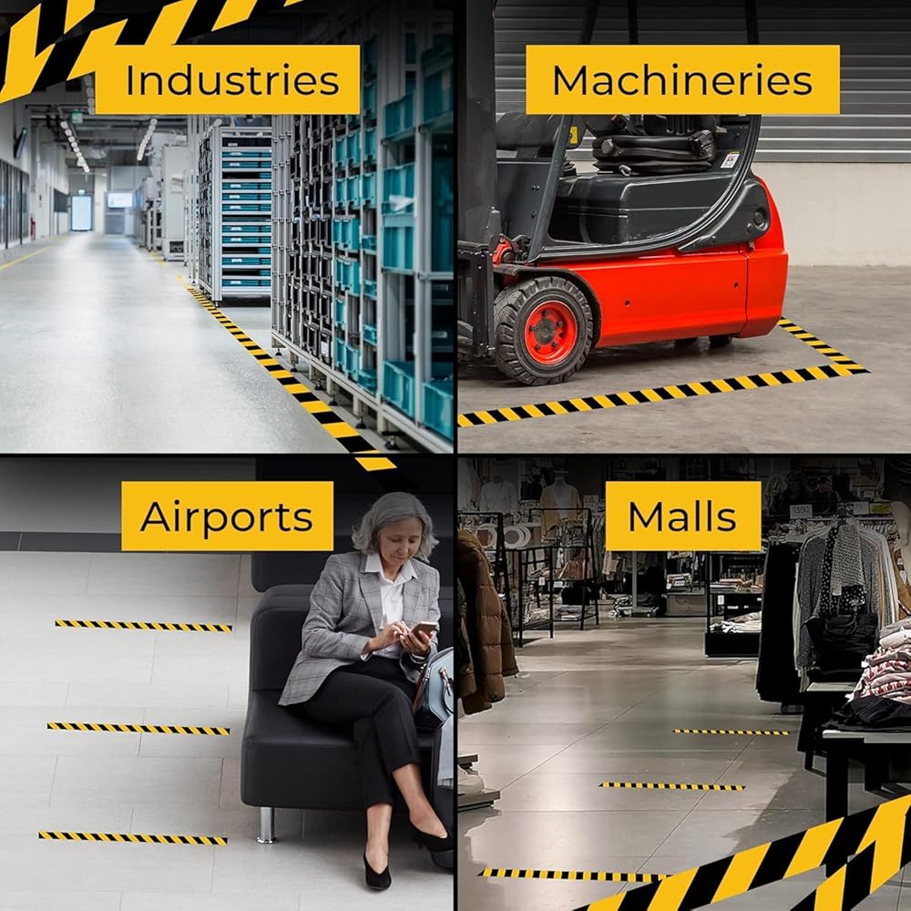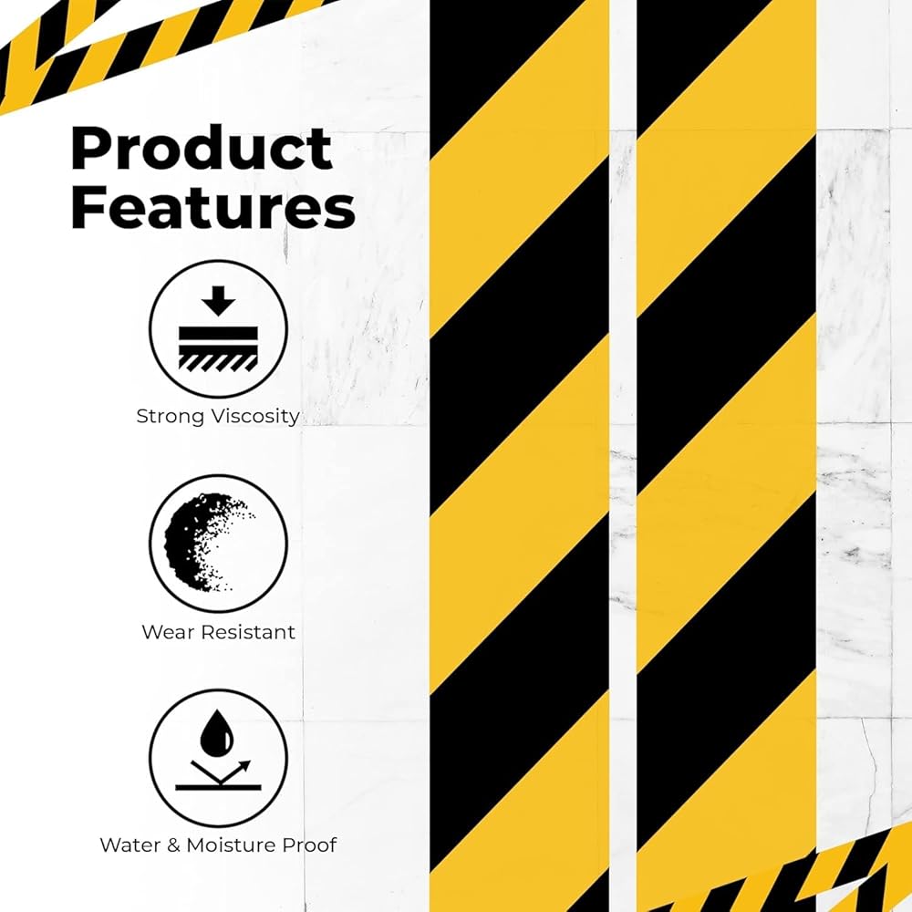 ✅ 𝐄𝐀𝐒𝐘 𝐓𝐎 𝐔𝐒𝐄: كل ما عليك فعله هو قياس منحنياتك ثم قص شريط الأرضية التحذيري وفقًا لذلك. يلتصق شريط الأمان باللونين الأسود والأصفر بسهولة على أي سطح جاف. يمكن إزالته دون ترك أي بقايا.