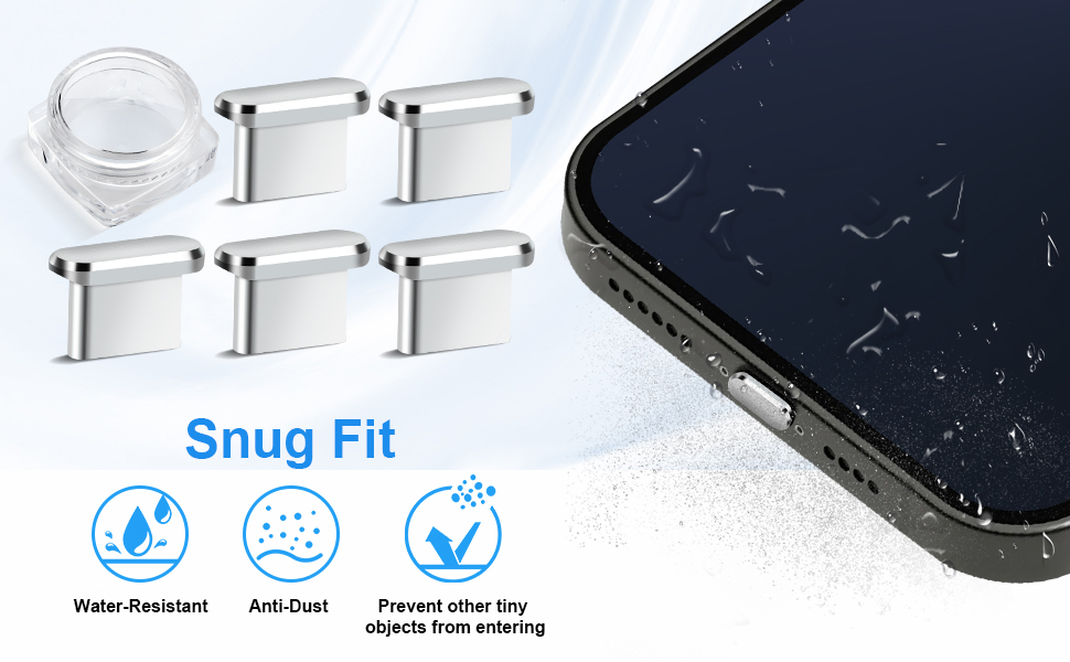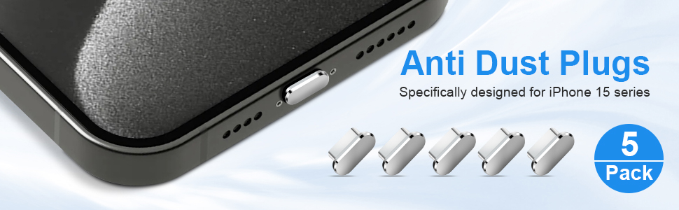 【Only for iPhone 15 Series】Tailored for iPhone 15, 15 plus, 15 pro, 15 pro max with USB-C ports. Not suitable for other USB-C port phones or devices. Package Contents: Includes a 5-pack of anti-dust plugs and a storage box for convenience.