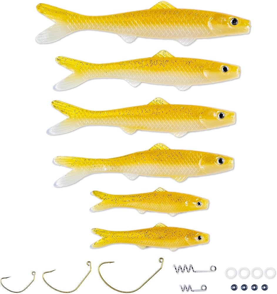 • التألق الأصفر: توفر مجموعة أسماك البلم الصفراء المكونة من 6 قطع خيارًا جريئًا ونابضًا بالحياة يجذب انتباه الأسماك حتى في المياه العكرة. يضمن لك اللون الأصفر عالي الوضوح التميز وزيادة فرصك في الصيد الناجح.