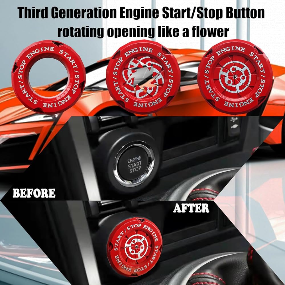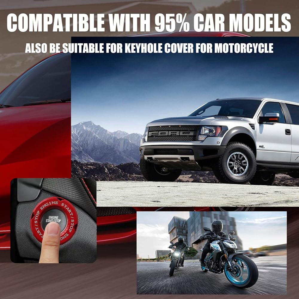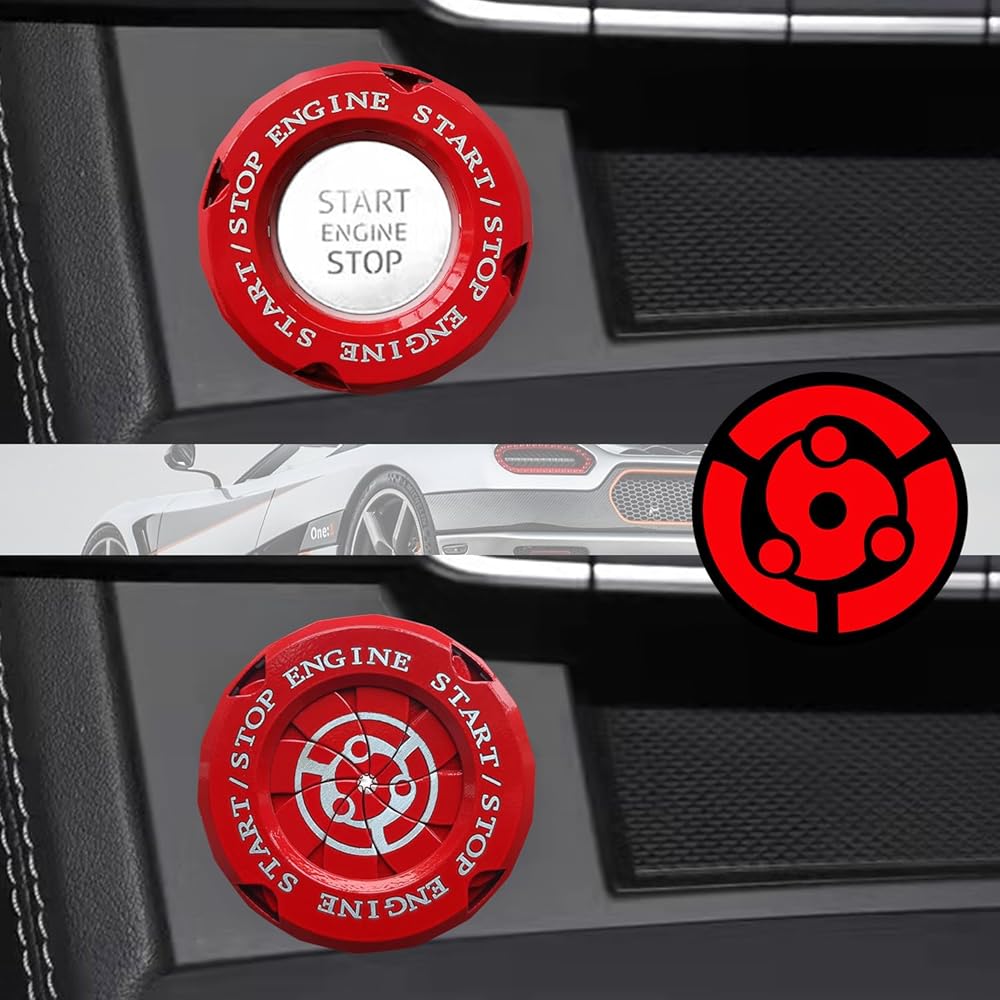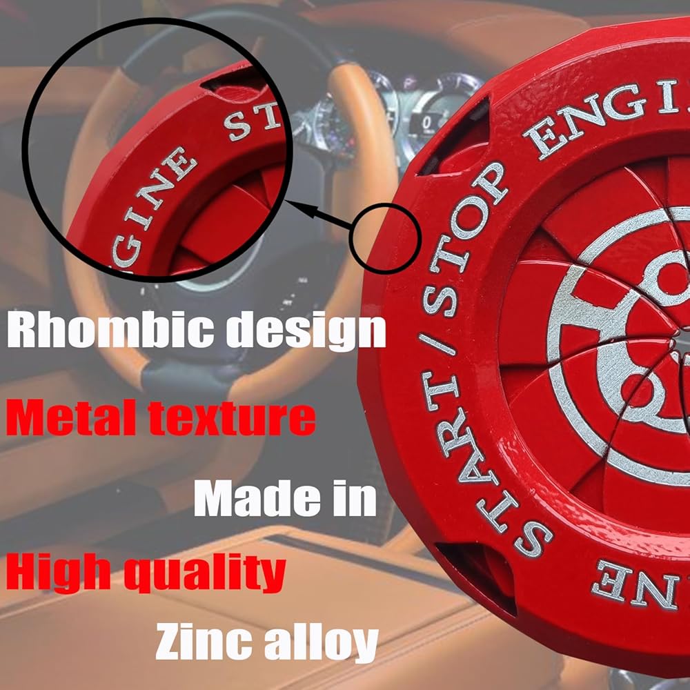 تصميم جديد: هذا تصميم جديد لغطاء زر إيقاف تشغيل المحرك. في كل مرة تبدأ فيها تشغيل سيارتك، سيمنحك تصميم الدوران إحساسًا إضافيًا بالاحتفال. اجعل سيارتك تبدو أكثر رياضية وقتالية.