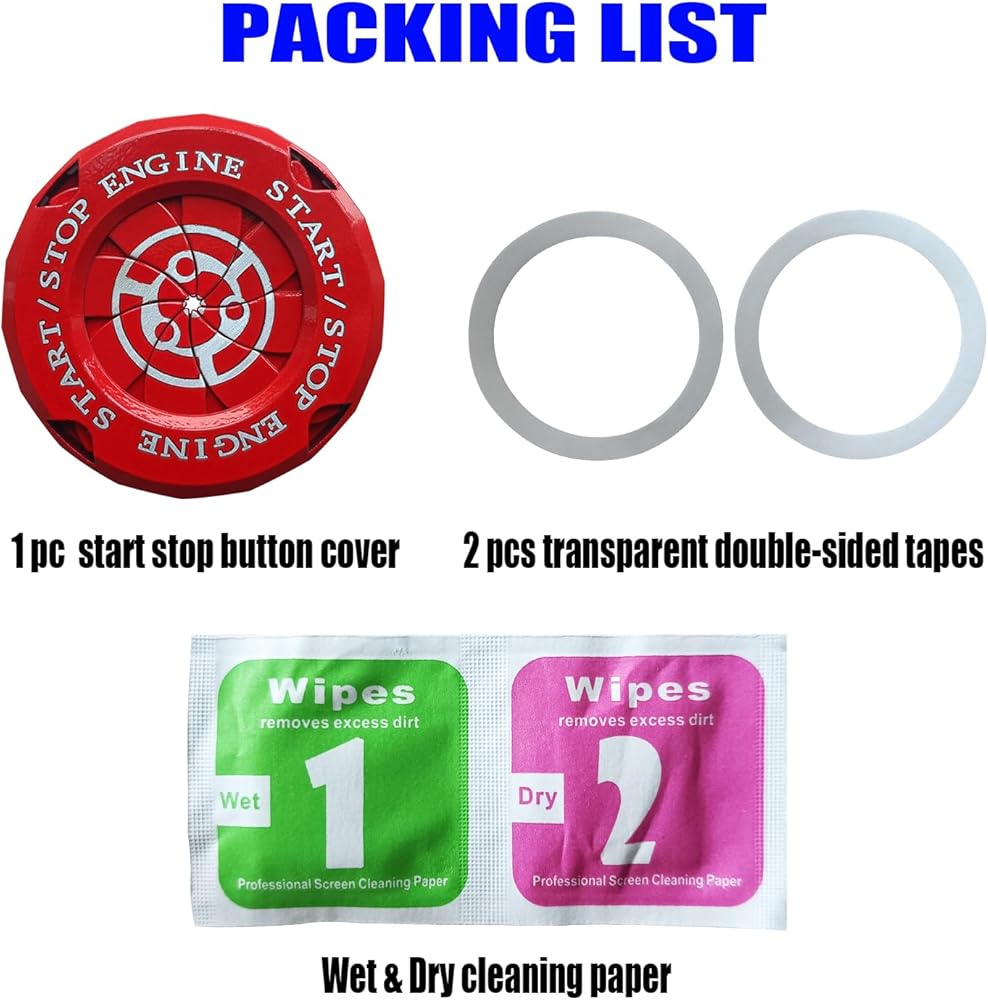 سهل التركيب: لا يوجد أي تعديلات، لا يوجد ثقب، فقط قشر والصق، تركيب غير مدمر، لا يؤثر على تشغيل زر السيارة الأصلي. لن يؤدي غطاء زر تشغيل محرك السيارة إلى كسر السطح الأصلي لزر تشغيل محرك السيارة.