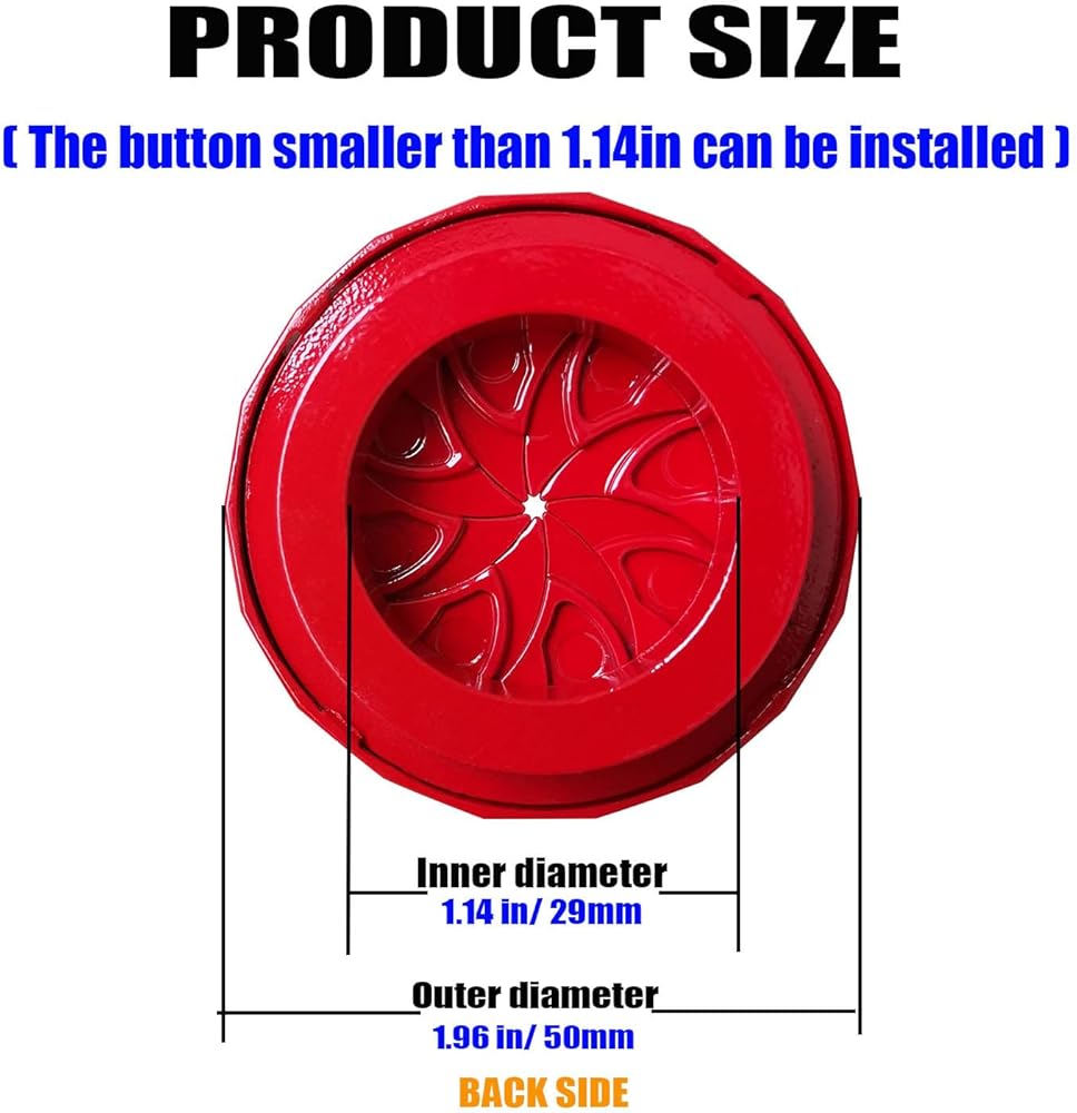 توافق أفضل: القطر الداخلي حوالي 1.14 بوصة/29 سم. يمكن تركيب زر غطاء الإشعال الأصغر من 1.14 بوصة. يناسب 95% من موديلات السيارات (السيارات، سيارات الدفع الرباعي، الشاحنات، إلخ). يرجى التحقق من قطر زر الإشعال للتأكد من أنه يناسب سيارتك تمامًا قبل الشراء. كما أنه مناسب أيضًا لغطاء فتحة مفتاح الدراجة النارية، وفتحة المفتاح، وثقب الباب، وزر تشغيل الكمبيوتر وغيرها من الأماكن عندما يكون الحجم أقل من 1.14 بوصة.