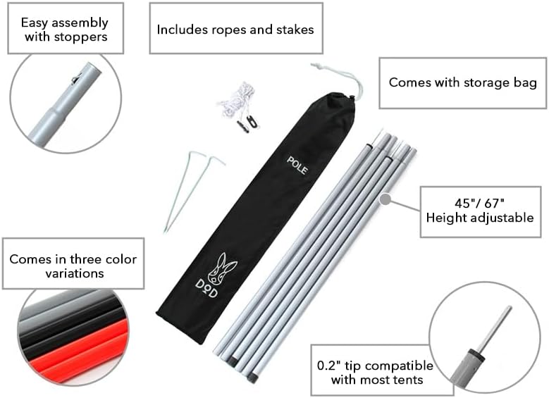 تتضمن عمودين من ثلاث قطع، و2 حبال عاصفة، و2 أوتاد لإعداد شامل.