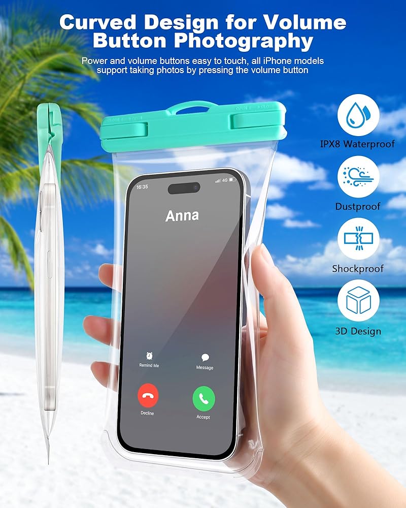 [تصميم منحني مطور لعام 2024]: تتميز الحقيبة المقاومة للماء بجوانب منحنية، مما يعزز الوصول إلى أزرار الصوت والطاقة ويعالج القيود المسطحة للحقيبة التقليدية المقاومة للماء.