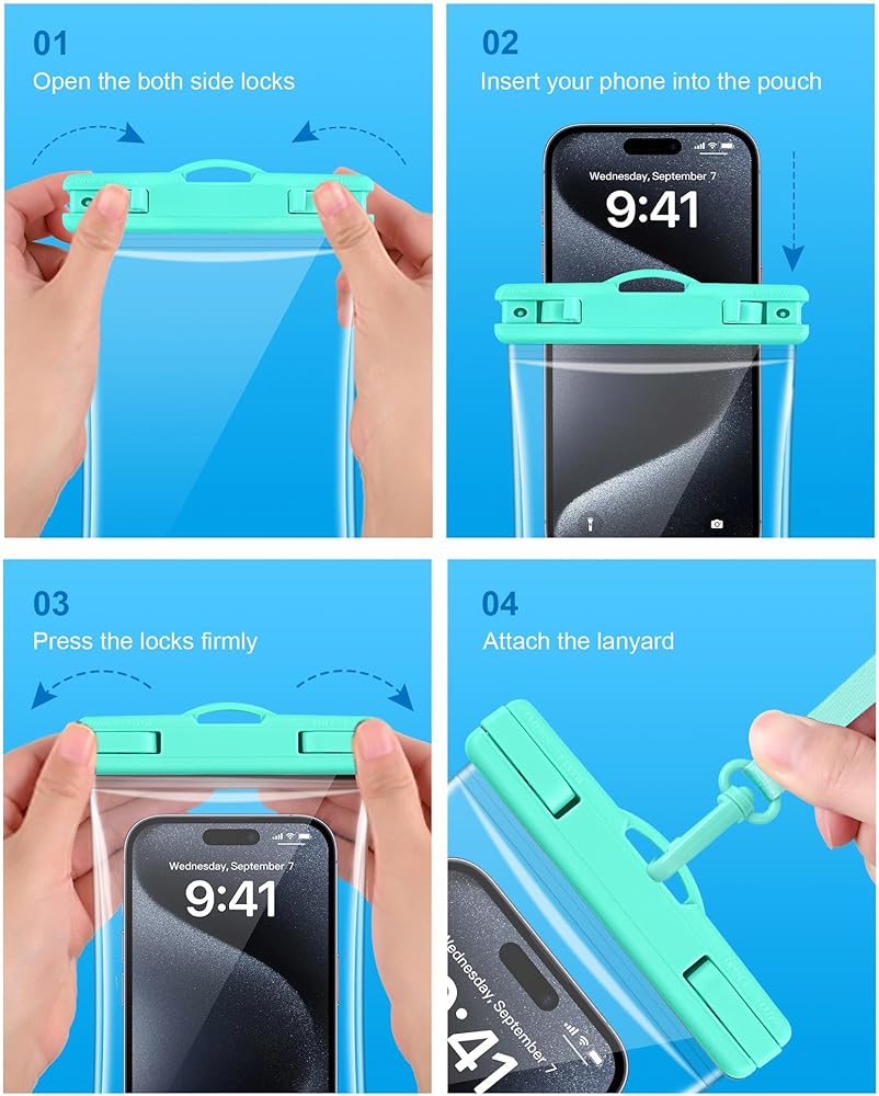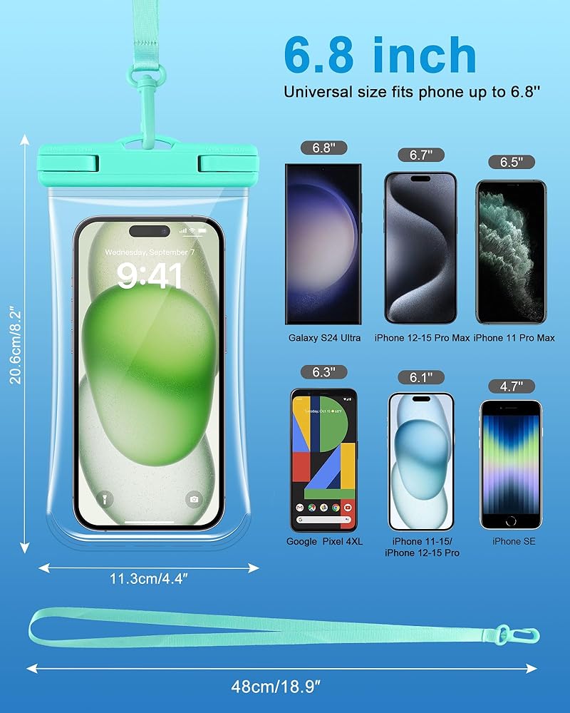 [ترقية مادة TPU]: مصنوعة من مادة TPU الصديقة للبيئة، هذه الحقيبة المقاومة للماء تعزز حساسية شاشة اللمس وتحسن فتح الهوية والمكالمات، مع تقليل التصاق الهاتف المرتبط بمواد PVC.