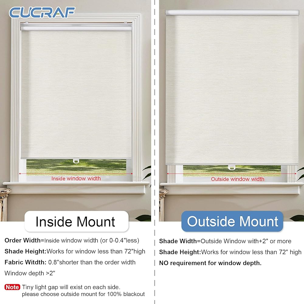 دليل أبعاد المقاس: 1، للتركيب الداخلي، عرض الطلب=عرض النافذة الداخلية -(0-0.4 بوصة)، تتطلب الستائر الدوارة عمق إطار نافذة يبلغ 2 بوصة على الأقل، وسيكون بها فجوة خفيفة صغيرة على كل جانب. ، للتركيب الخارجي، اطلب عرض الظل = عرض النافذة الخارجية + (2-4) بوصة، يمكنك اختيار التركيب الخارجي لتجنب فجوة الضوء وضمان التعتيم التام. ارتفاع النافذة أقل من 72 بوصة. ملاحظة: عرض القماش أضيق بحوالي 0.8 بوصة من إجمالي عرض الظل الدوار