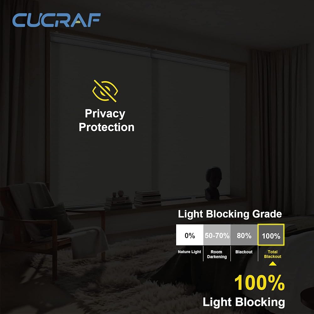 【نسيج حجب الضوء بالكامل】ستائر دوارة CUCRAF للنوافذ تستخدم بدون حبال من نسيج البوليستر المطلي الذي يحجب أشعة الشمس القاسية بنسبة 100% من تسخين الغرفة ويحمي الأدوات المنزلية بشكل فعال من التعرض لأشعة الشمس، كما أنه يحجب الأشعة فوق البنفسجية، وستائر معزولة موفرة للطاقة ويوفر حماية قصوى للخصوصية. نمط القماش من قماش الجاكار وليس صلبًا، وسيعزز أداء ومظهر معالجة نافذتك