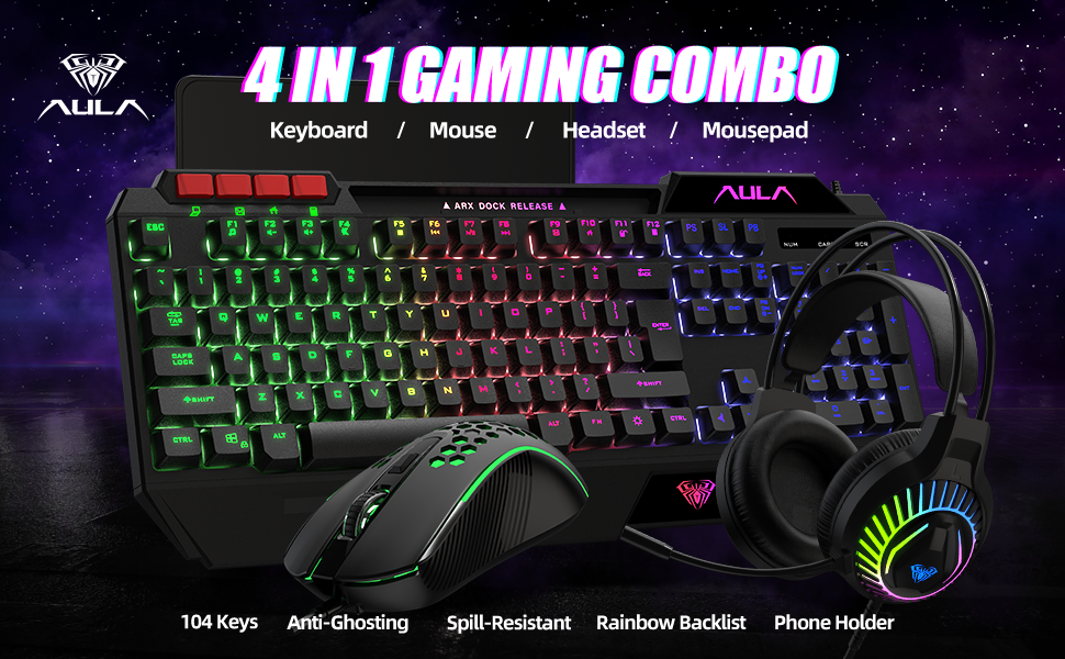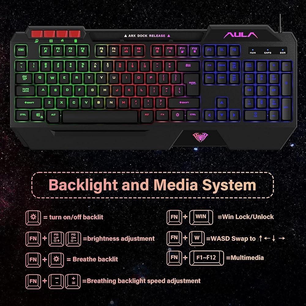 لوحة مفاتيح ألعاب AULA، مجموعة لوحة مفاتيح وماوس ولوحة ماوس، مجموعة لوحة مفاتيح ألعاب بإضاءة خلفية LED RGB، مجموعة لوحة مفاتيح سلكية USB لألعاب الكمبيوتر الشخصي، وXbox، ومستخدمي PS4
