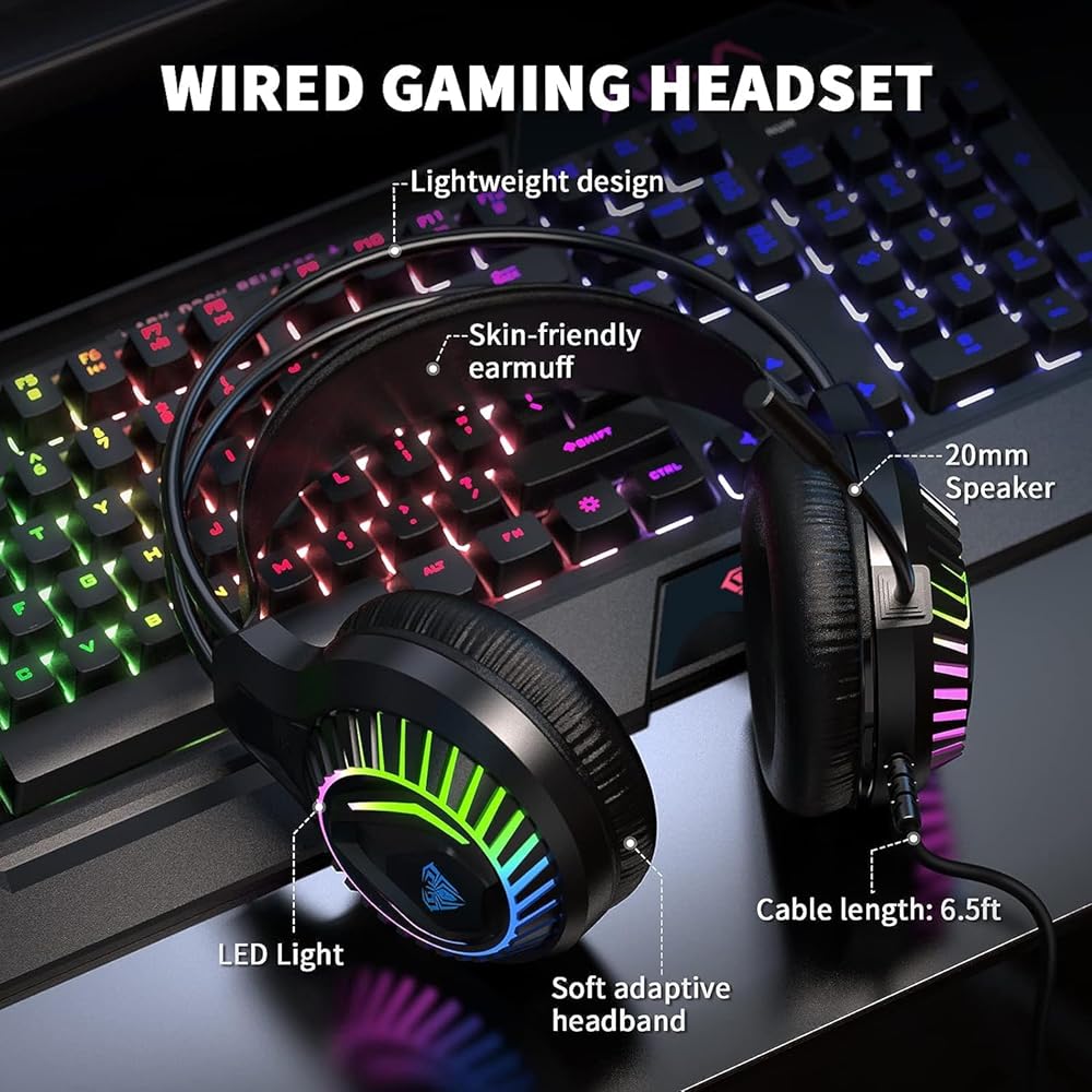 • سماعة Gmaing مع ميكروفون: تصميم إضاءة مريح ورائع، سماعات رأس استريو فريدة من نوعها مع محركات اتجاهية 50 مم، تتيح لك التواجد في المشهد. عصابة رأس تعليق ناعمة قابلة للتكيف وقابلة للتنفس وصديقة للجلد، بدون ضغط، أكثر راحة في الارتداء