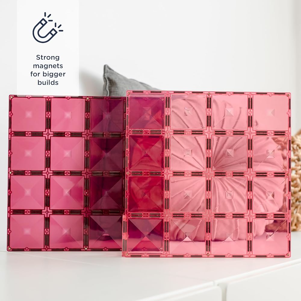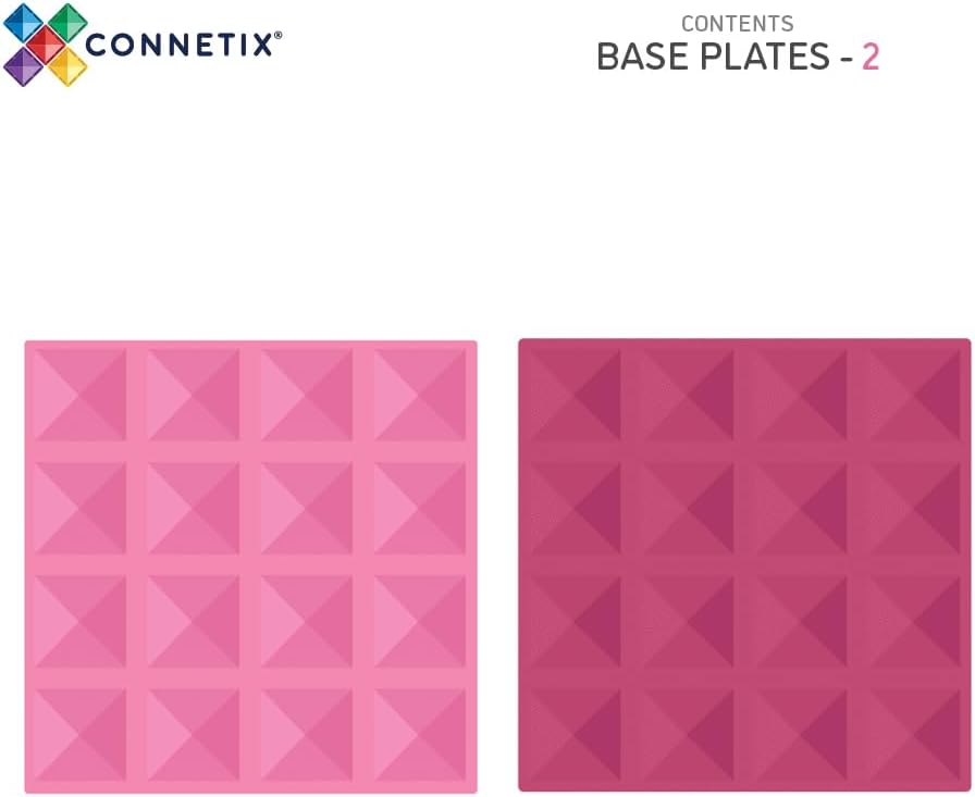 Featuring the Connetix signature bevel design and numerous magnet points to build from, Base Plates grow the possibilities of magnetic tile play! Use these solid bases to support even taller towers and studier dollhouses; foster creativity and spark imaginative play as you transform these berry tone base plates into a field of flowers, tables for a tea party or magical magician's pool; encourage fine motor skill development and STEAM learning opportunities by creating coin drops, mazes and sky-high platforms! Connetix is a quality open-ended toy that grows WITH children as they learn and their play becomes more complex. Complement your Berry & Pink Base Plate Pack with the 120 Piece Pastel Creative Pack and 106 Piece Pastel Ball Run Pack to take your Connetix creations to the next level.