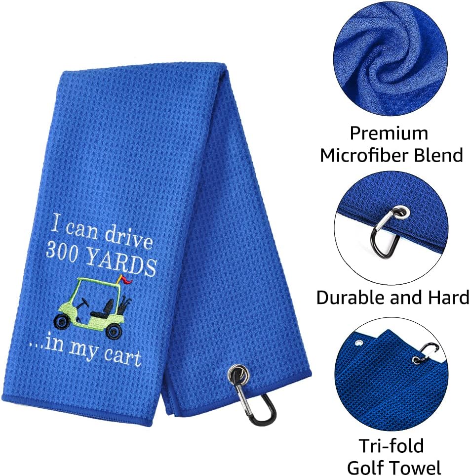 TOUNER Funny Golf Towel Gifts for Dad Men, Retirement Gifts for Men Golfer, Funny Embroidered Golf Towel for Golfing Bags with Clip (I Can Drive 300 Yards)