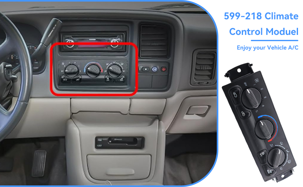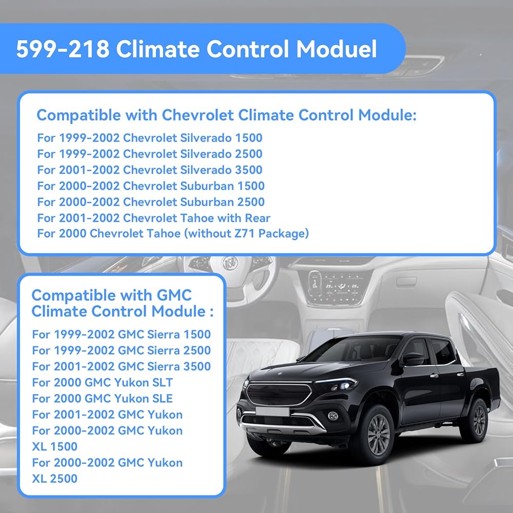 599-218 وحدة التحكم في المناخ لسخان التيار المتردد متوافقة مع 1999-2002 شيفروليه سيلفرادو سوبربان 1500 2500 3500 يوكون، جي إم سي يوكون سييرا 1500 2500 3500 HD، يستبدل 15054697، 15054698، 15753263، 15753264