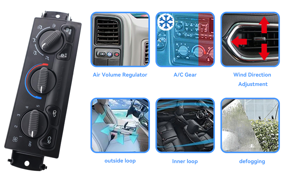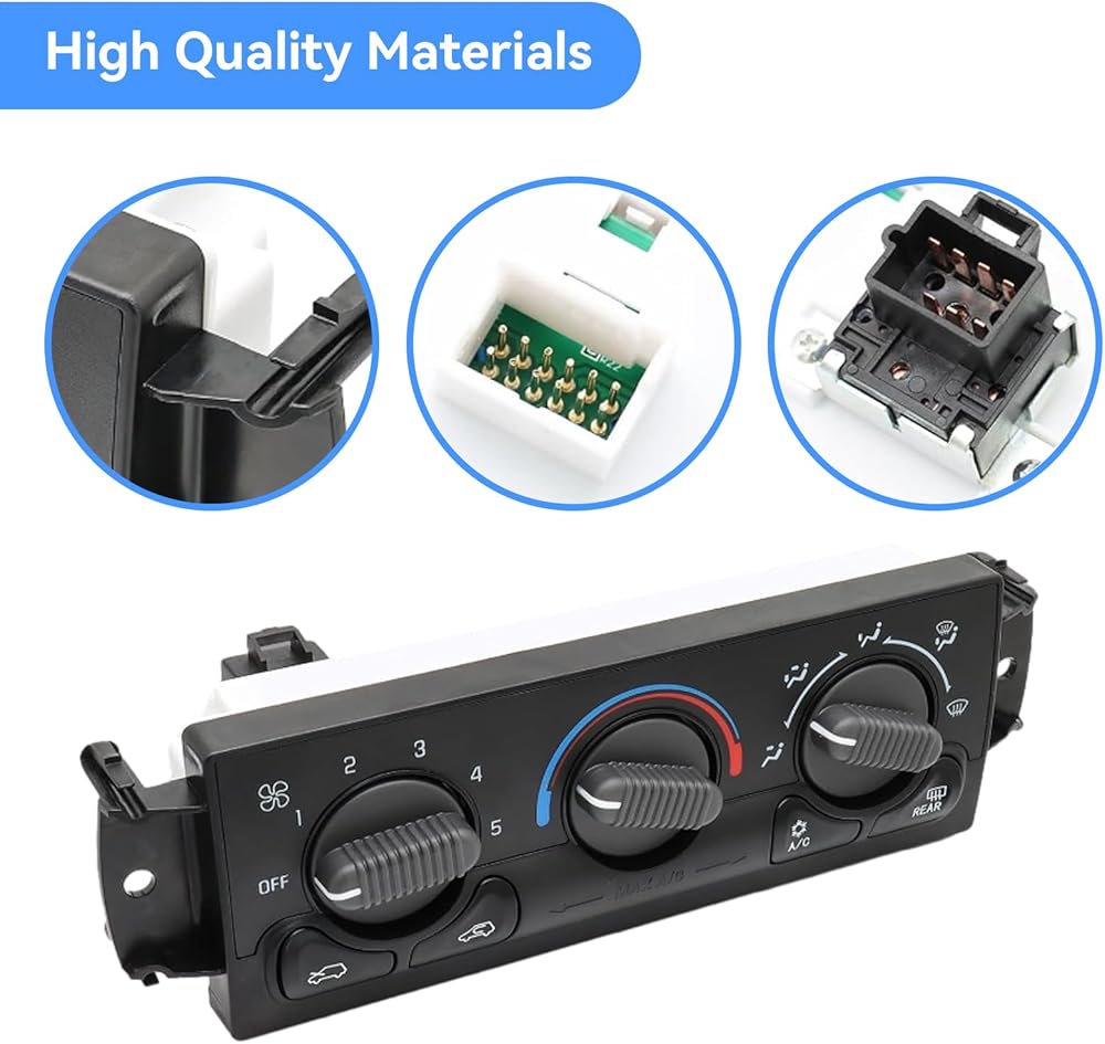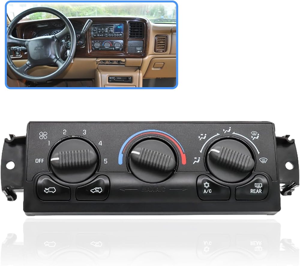 【متوافق مع】 التحكم في نظام التدفئة والتهوية وتكييف الهواء (HVAC) في سيارات مختارة من شيفروليه وجي إم سي. متوافق مع 2002 أفالانش 1500/2500، 2001-2002 سيلفرادو 2500 HD، 1999-2002 سيلفرادو 2500، 2001-2002 سيلفرادو 3500 , 1999 سيلفرادو, 2000-2002 سوبربان 1500/2500, 2000 تاهو; متوافق مع 1999-2002 جي إم سي سييرا 1500/2500، 2001-2002 جي إم سي سييرا 1500HD/2500HD، 2001-2002 جي إم سي سييرا 3500، 2000-2002 جي إم سي يوكون XL 1500/2500، 2000 جي إم سي يوكون
