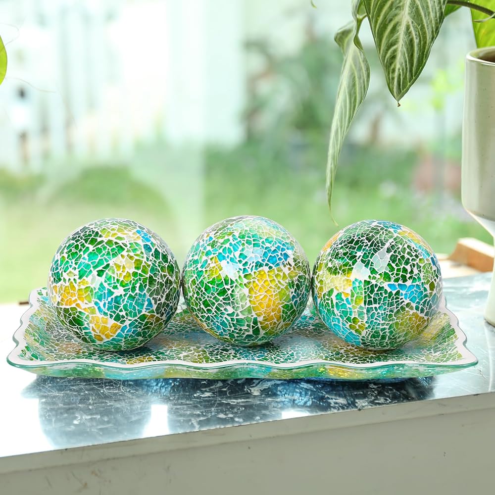 خدمة عملاء ودودة: تحتوي هذه العبوة على 3 كرات زجاجية فسيفساء ووعاء مزخرف، يبلغ قطر كل منها 10.16 سم. يرجى التأكد من حجم المنتج قبل الشراء ولا تتردد في الاتصال بنا عبر البريد الإلكتروني لأية استفسارات.