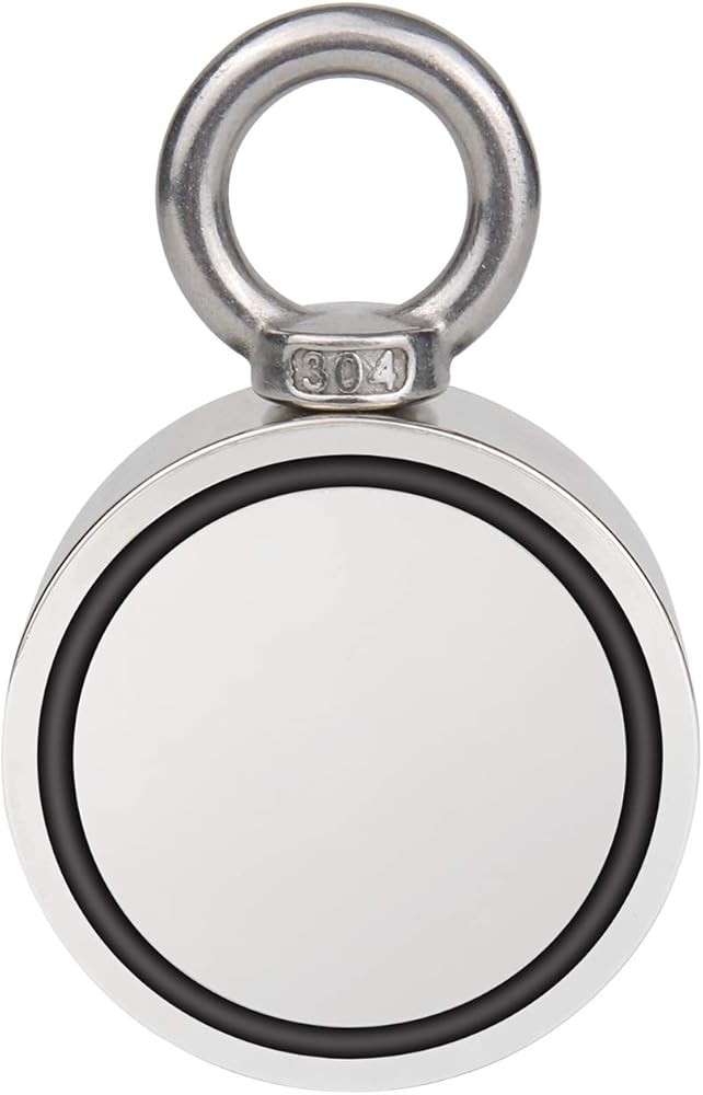 【Powerful Magnet】75mm diameter and 25mm thickness, Double sided pulling force will up to 960LBS(434KG) totally (each side 480 lbs/217kg). Specifically designed for retrieving in river and magnetic fishing.