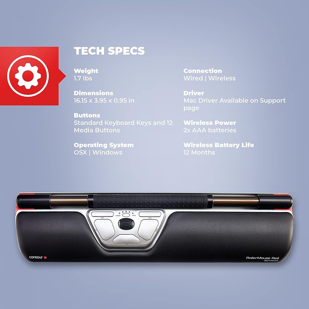 الشكل يلبي الوظيفة: RollerMouse Red من Contour Design هو فأرة كمبيوتر لاسلكية مبتكرة تتميز بقضيب دوار حاصل على براءة اختراع للتحكم في المؤشر والسماح لك بالعمل بسلاسة بكل من الأصابع والإبهام، مما يحدث ثورة في الاستخدام المريح للكمبيوتر.
