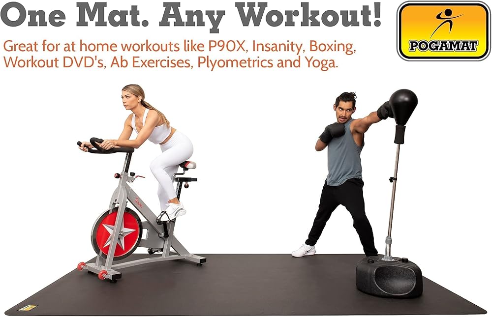 سجادة تمرين كبيرة فاخرة من POGAMAT - 6 أقدام × 4 أقدام × 1/4 بوصة سميكة متينة للأرضيات الرياضية المنزلية - تعمل بشكل رائع لجميع تمارين القلب واليوجا وحصيرة الدراجة - تستخدم مع أو بدون أحذية