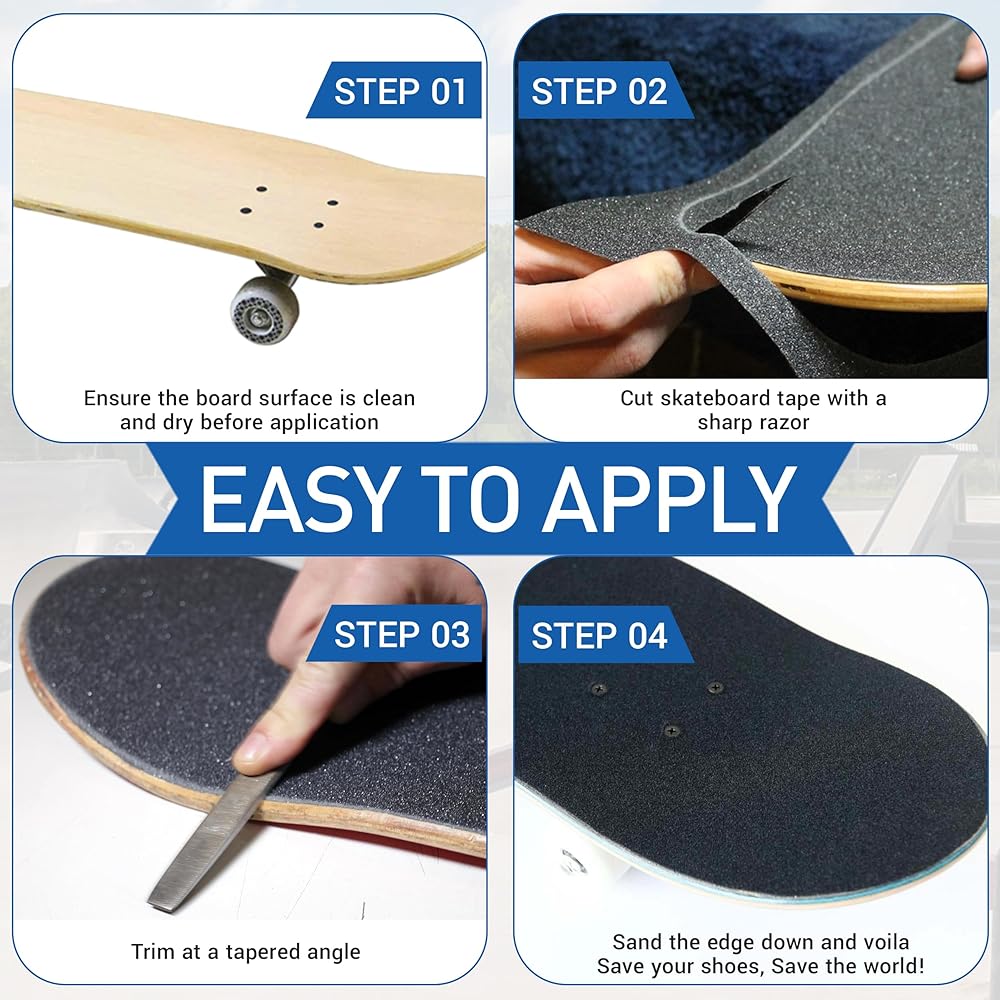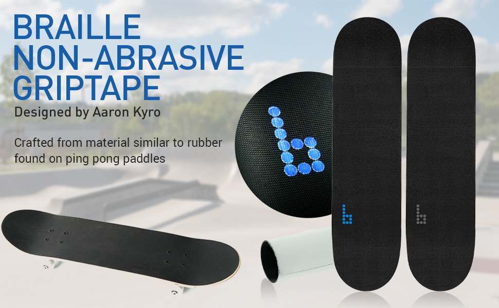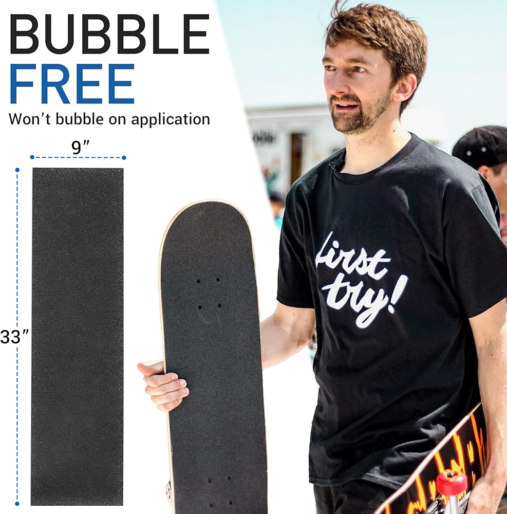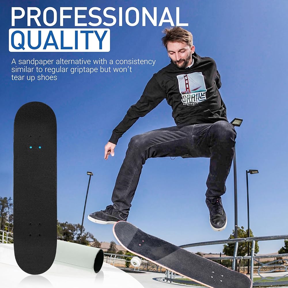 • شريط قبضة غير كاشط: شريط قبضة لوح التزلج غير الكاشط بطريقة برايل غير قابل للانزلاق ومقاوم للاهتراء ولن يتقشر عند تعرضه للبرد أو الحرارة. قم بأداء حيل متقدمة دون إتلاف حذائك لأن شريط التزلج الاحترافي هذا يوفر تحكمًا فائقًا في لوحتك.