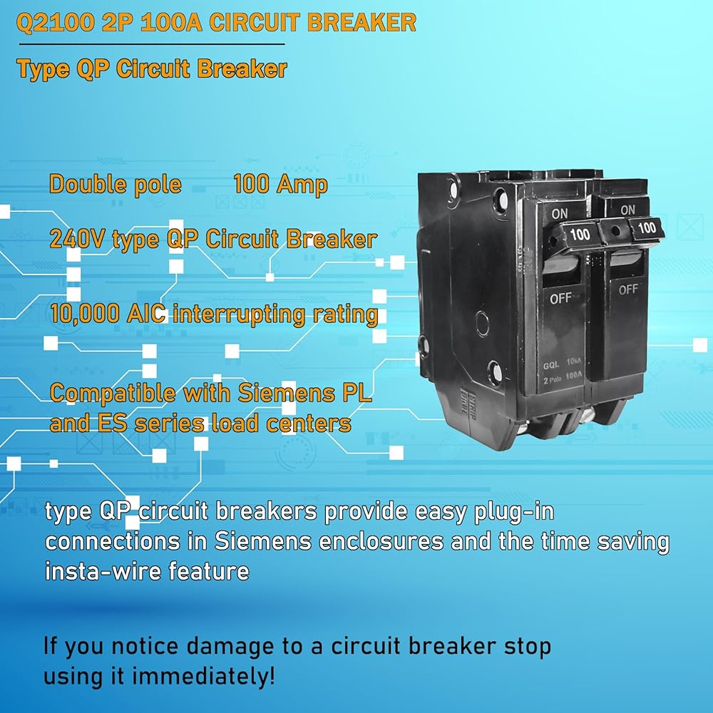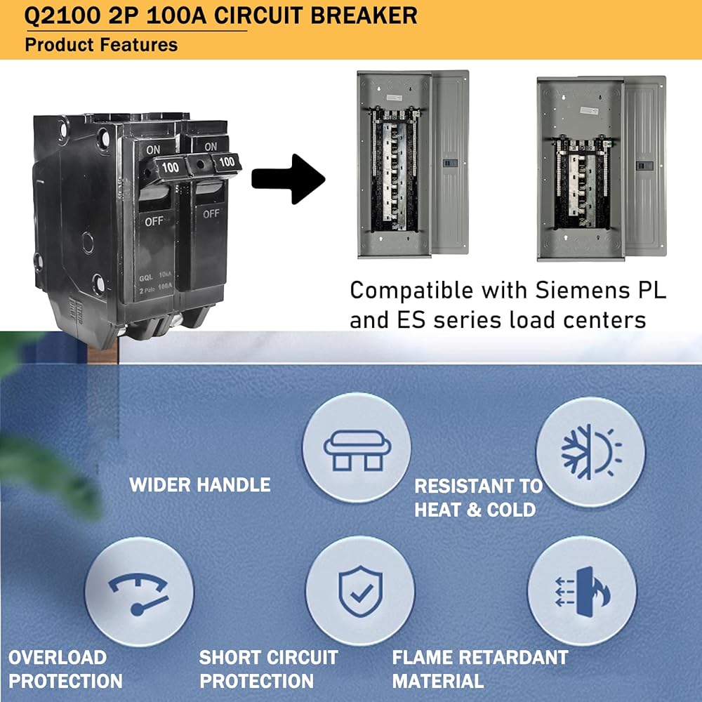مثالي لاستبدال قواطع الدائرة: استبدال قاطع الدائرة ذو القطب المزدوج 100 أمبير Q2100 لقواطع SIEMENS، مناسب لنوع Siemens EQ. مراكز التحميل من سلسلة EQL، وSEQ EQG، وPL، وES يمكن استخدامها على نطاق واسع في توزيع الطاقة، والألواح، وتكييف الهواء، والتدفئة، والتبريد، ونظام المياه بدون خزان، وما إلى ذلك. الخيار الأفضل بالنسبة لك.