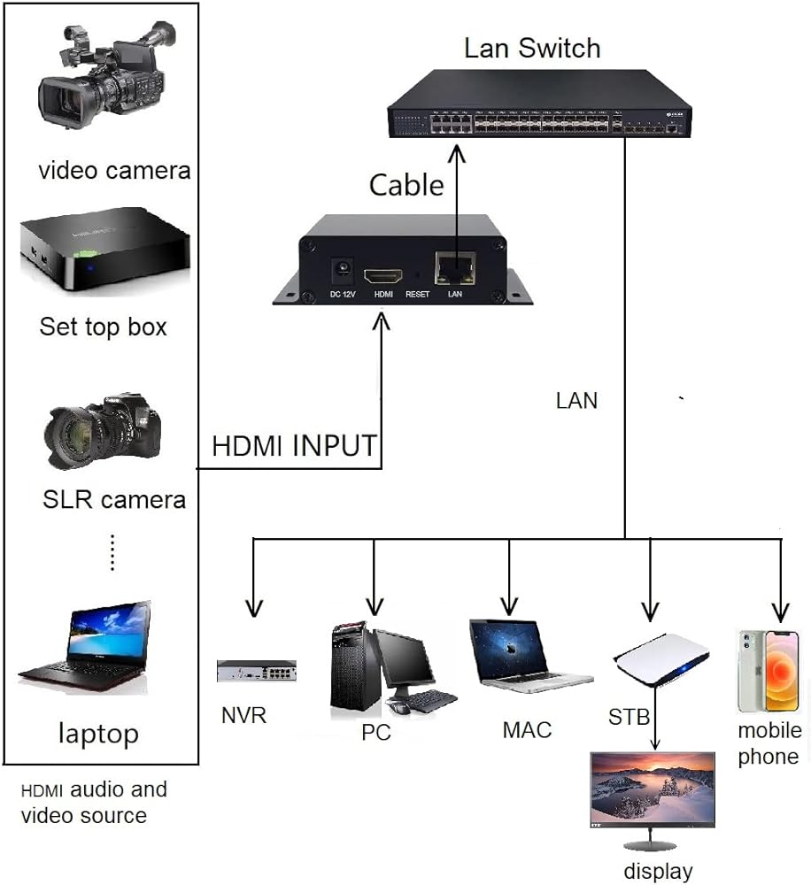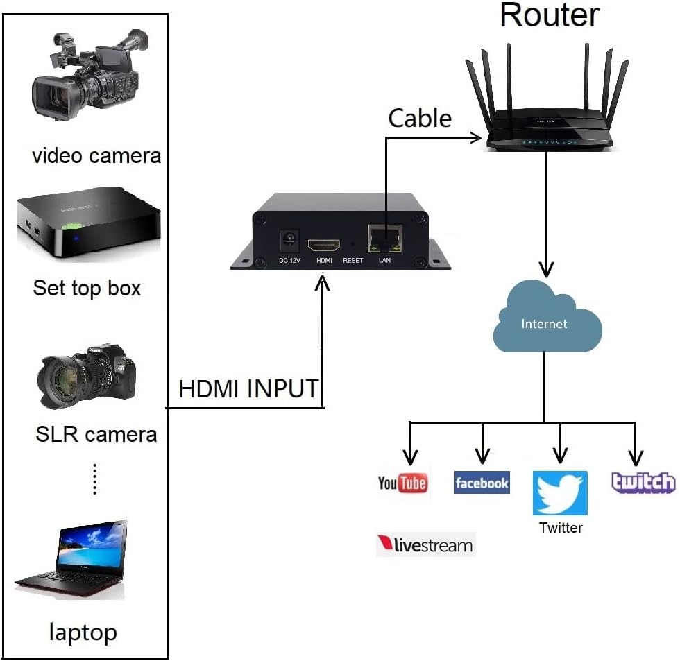 Supports live streaming:HDMI encoder can push the HDMI video signals output by devices (such as computers, cameras, set-top boxes, etc.) to live broadcast platforms such as YouTube Ustream wowza Facebook ,No computer is needed for live broadcast, just encoder and router are enough. The encoder can output 4 video streams and support live broadcast on 4 platforms.