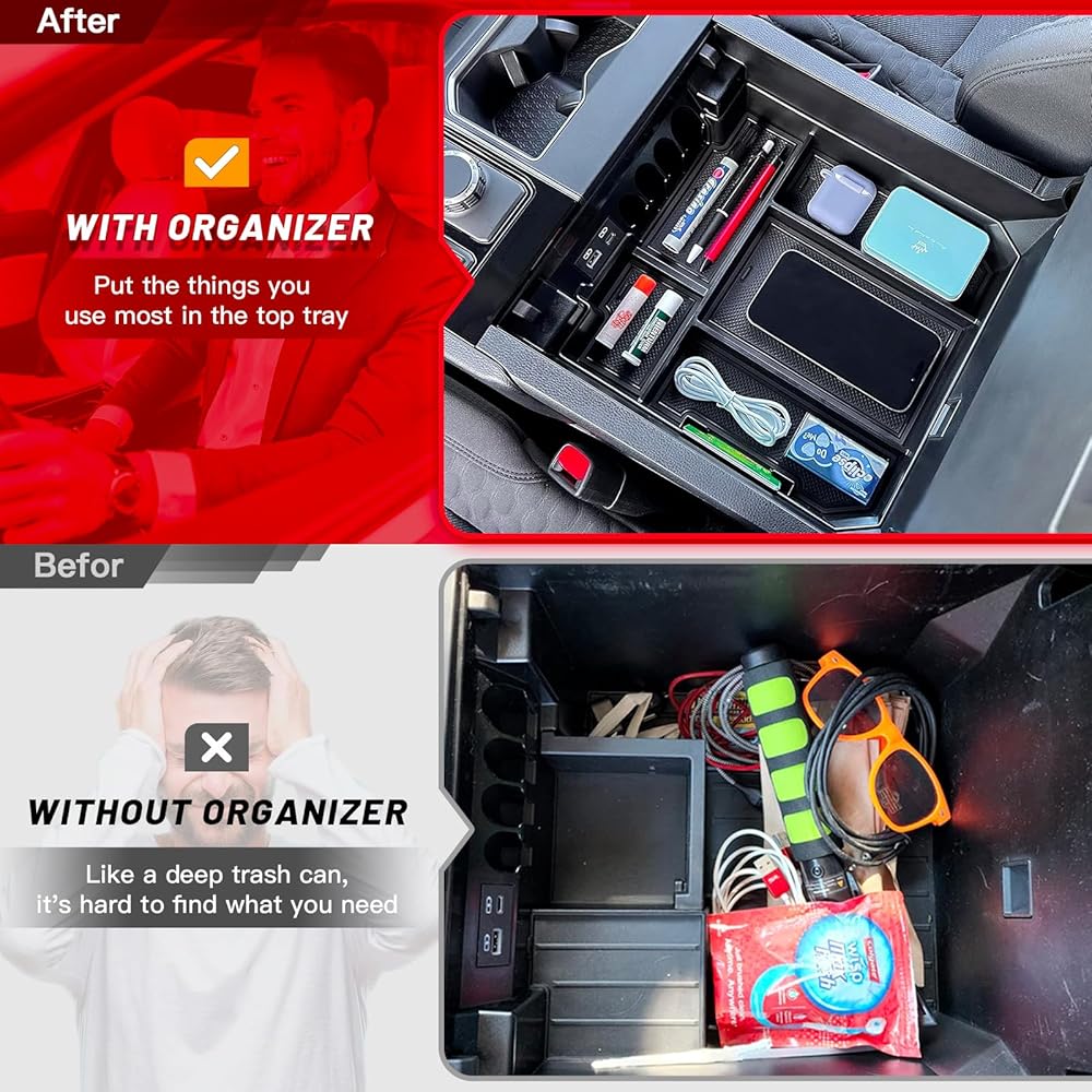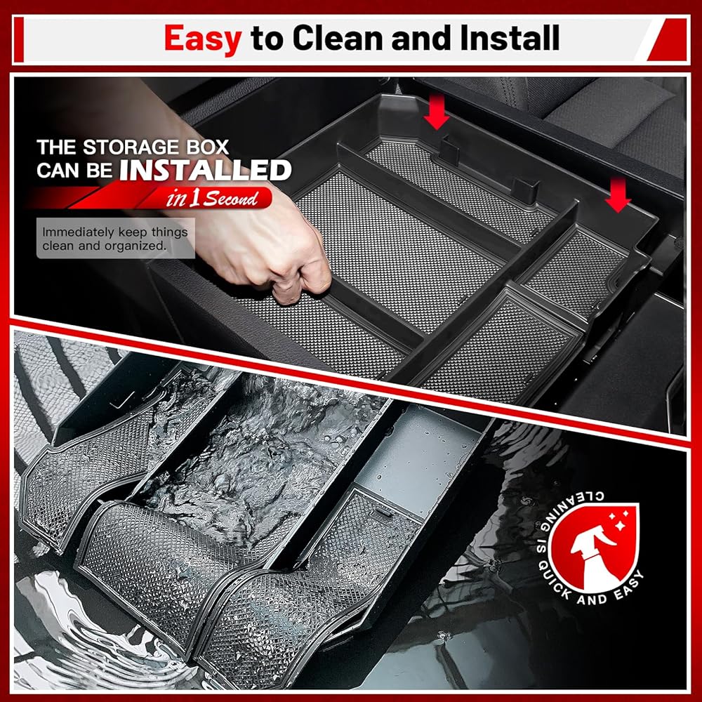 Custom Fit for 2022-2024 Toyo-ta Tundra/2023-2024 Toyo-ta Sequoia: This center console organizer storage box is custom fit for the 2022 2023 2024 Toyo-ta Tundra/2023 2024 Toyo-ta Sequoia, providing convenient space for items that need to be easily obtained. It doubles the space for enhanced organization, maximizing every inch of your car's interior.