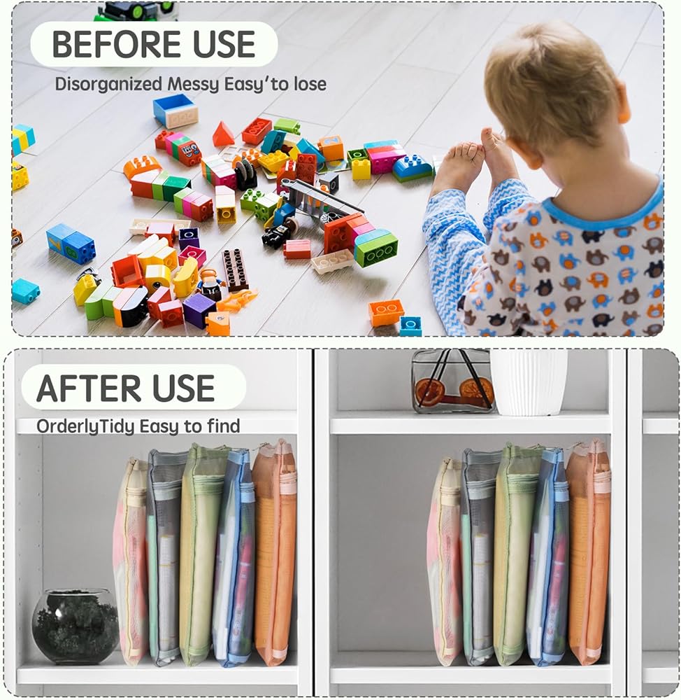 🌸تنظيم سهل: قم بتبسيط حياتك من خلال حقيبتنا الكبيرة الواسعة بحجم A4، والتي تحتوي على 10 أكياس بخمسة ألوان مفعمة بالحيوية، وهي مثالية لتخزين وفرز ألعاب أطفالك دون عناء. وداعا للقيود المكانية! على عكس الصناديق المرهقة، توفر حقائب الألغاز الخاصة بنا حلاً تخزينيًا أنيقًا، مما يقلل من الفوضى في غرف اللعب والفصول الدراسية والمكاتب وأثناء التنقل.