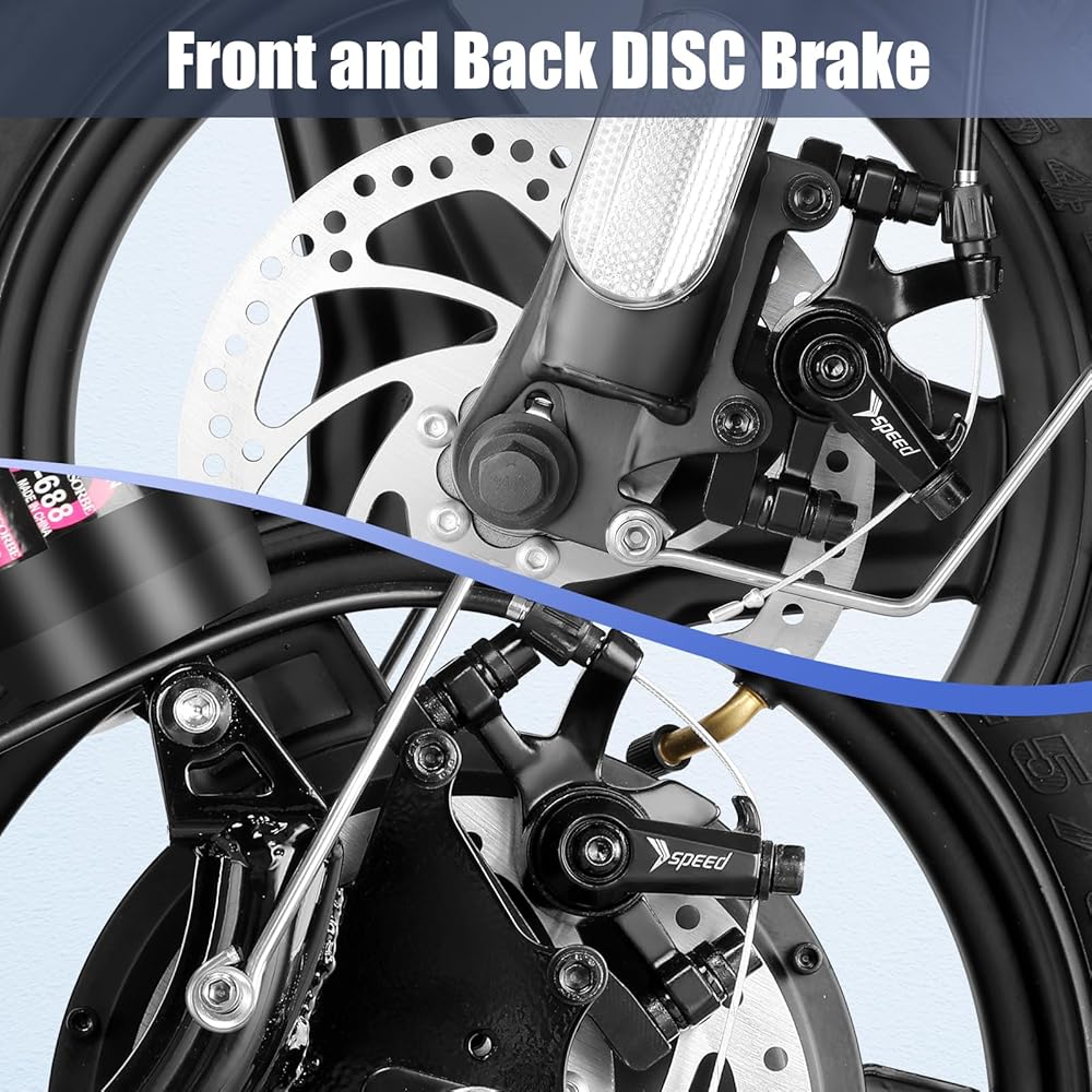 🛴【LCD Display & Safe to Ride】: The LCD monitor shows the battery level, current speed, speed mode, single and total mileage, so you can get a clear picture of your riding. The effective front and rear disc brake on the e-scooters provide excellent stability and control. The high-brightness headlight and rear brake light keep your riding safe at night.