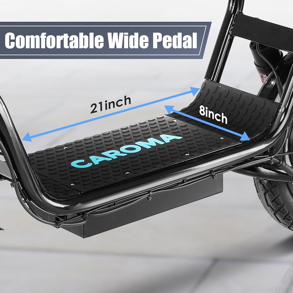🛴【819W Motor & 48V Battery】: Caroma P1 electric scooter is powered by a robust peak 819W motor, reaching top speeds of 20 mph and handling 15% hill grades with ease. Its high-capacity 48V lithium battery, enhanced by regenerative braking, provides a remarkable range of up to 25 miles. Perfect for commuting or leisure rides, this adult electric scooter offers unparalleled versatility and high performance.