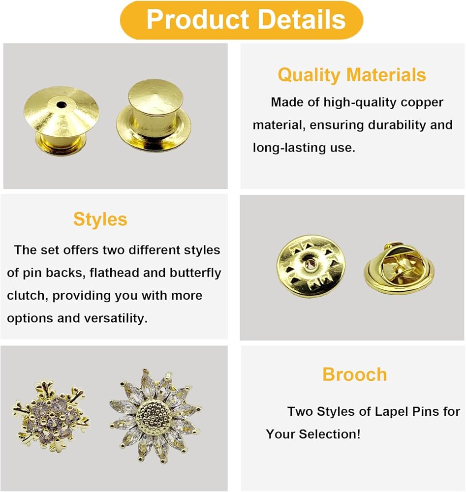 • 🎁تثبيت آمن وموثوق: مع كل من خيارات القابض ذات الرأس المسطح والفراشة، يمكنك تأمين دبابيسك بثقة دون القلق بشأن ارتخاءها أو سقوطها. تم تصميم هذه الدبابيس الخلفية للحفاظ على إكسسواراتك في مكانها، مما يضمن بقائها مثبتة بشكل آمن.
