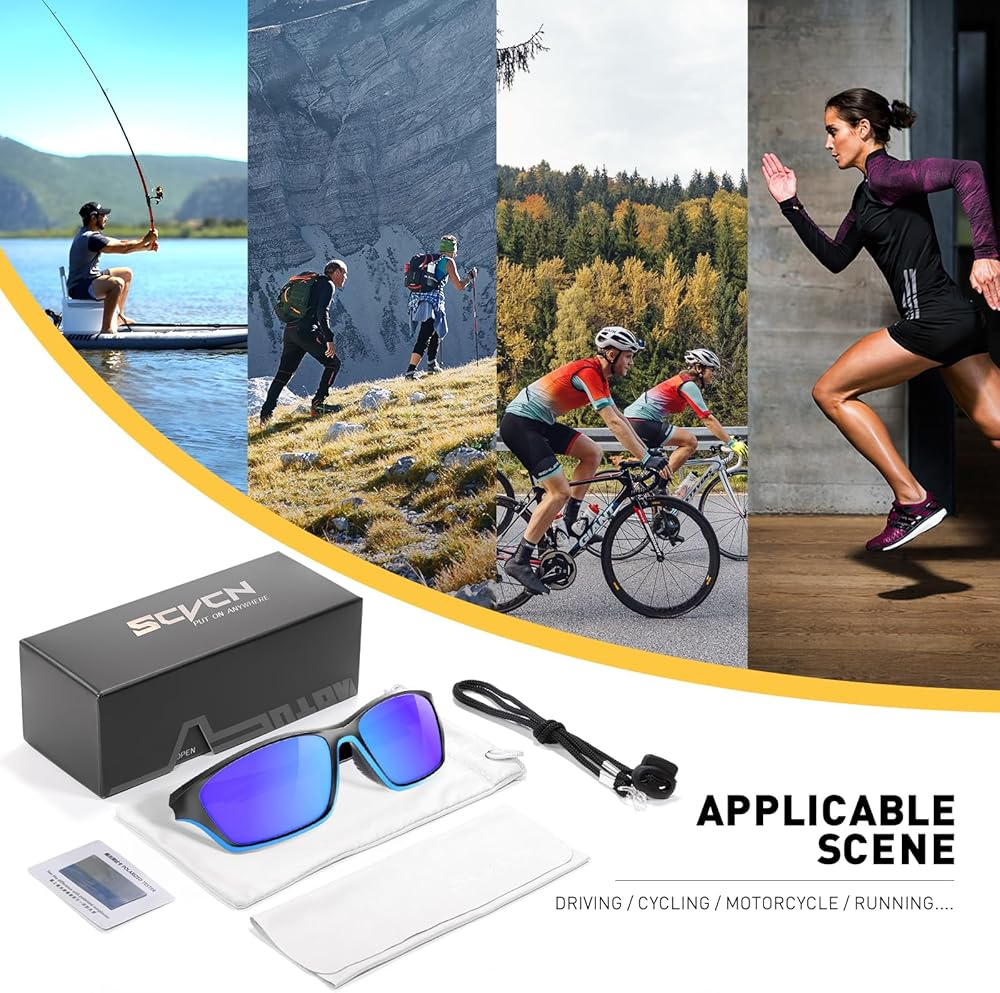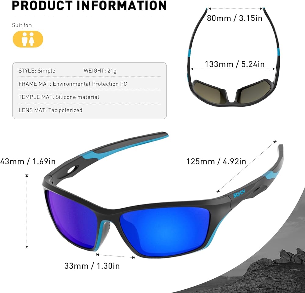 SCVCN is dedicated to providing you with the finest products, enabling you to explore the great outdoors freely and embrace life to the fullest. Diverse in Colors:Unique Design and Color Selection SCVCN sport sunglasses prioritize aesthetics with their unique design and a wide range of color choices to cater to diverse tastes and styles. 100% UV400 Protection:Enjoy Outdoor Activities with Confidence UV rays under the sun pose potential threats to your eyes, prolonged exposure to UV radiation can lead to discomfort, dryness, burning sensation, and fatigue. SCVCN's polarized sports eyewear offers 100% UV400 protection, blocking harmful UVA and UVB ultraviolet rays, ensuring reliable eye protection during outdoor activities. Whether you're on a sunny beach, in snowy terrain, or hiking in the mountains, we guarantee clear vision and eye comfort. TR90 Frames:Lightweight and Durable The frames of SCVCN's polarized sports sunglasses are crafted from TR90 material, known for its high-quality blend of lightweight and durability. Regardless of your sporting activity, this frame will securely conform to your face, resistant to external impacts that could cause damage. The frame's design is both classic and stylish, suitable for both men and women, ensuring you remain elegant even during intense workouts. Superior Grip Nose Pads and Temple Arms:Secure Fit To ensure that your sunglasses stay in place even during physical activities, SCVCN's polarized sports eyewear frames are equipped with anti-slip rubber nose pads and temple arm tips. This superior grip material keeps your sunglasses firmly secured to your head, even in intense motion or unstable environments, preventing them from easily slipping off. Please note that while I've provided a professional translation based on the original text, it's always a good practice to have a native English speaker or professional editor review and refine the content for specific marketing or branding purposes.