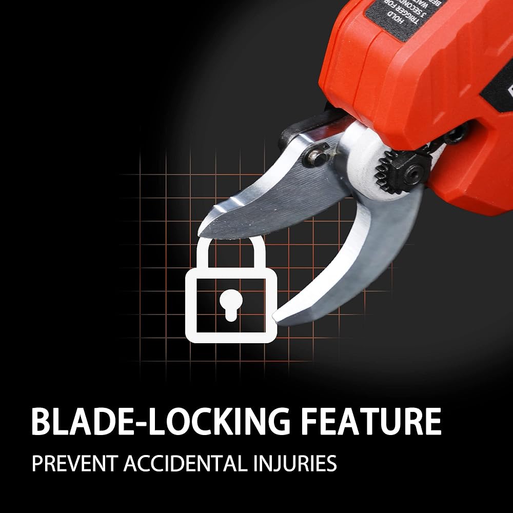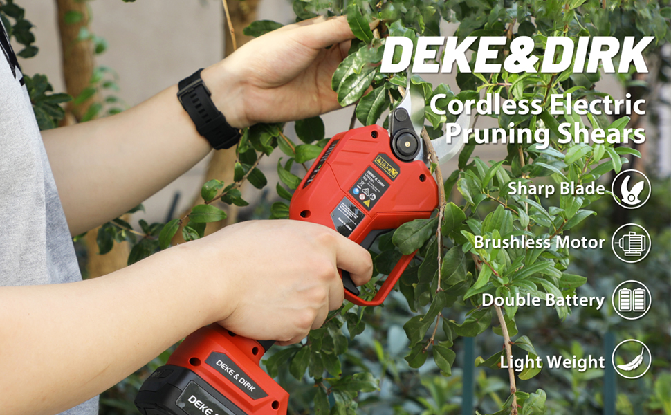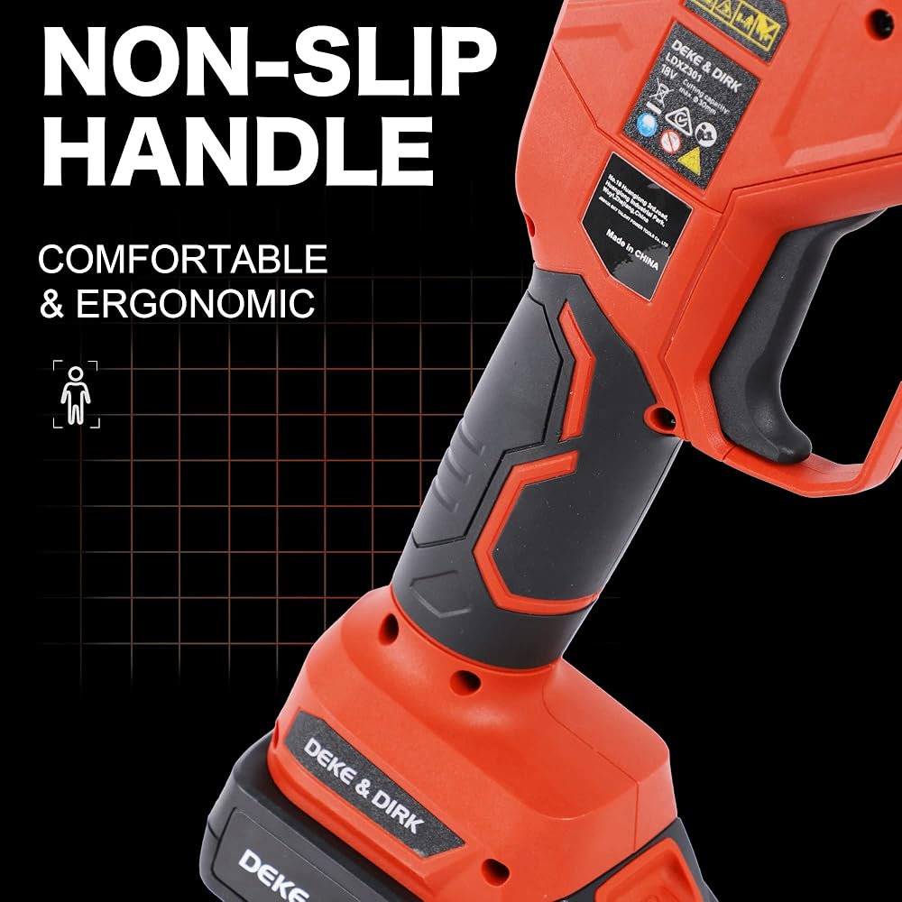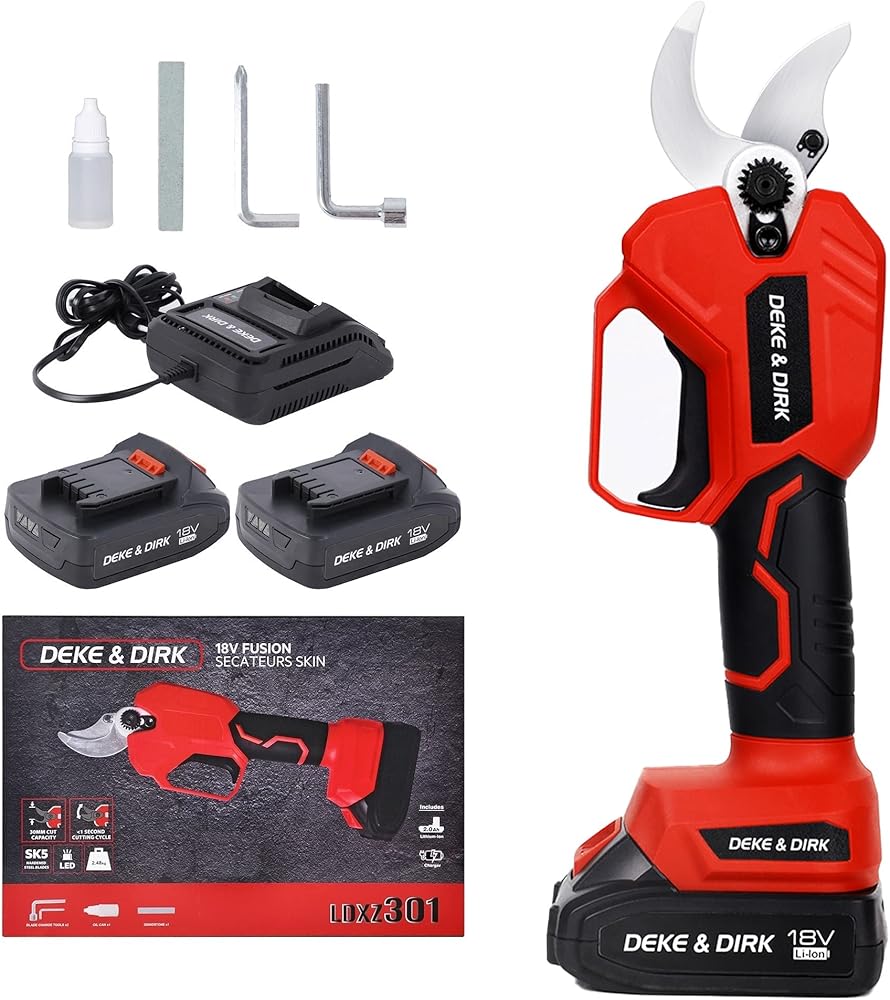 【حادة للغاية وقوة قوية】 مقصات التقليم الكهربائية اللاسلكية الاحترافية من ديك اند ديرك مصنوعة من الستيل عالي الكربون SK5 وتعمل بمحرك قوي بدون فرشاة. الشفرة حادة ومتينة للغاية، ويمكنها بسهولة قطع فروع 1.2 انش (30 ملم) ولن تتلف الفروع. يمكن للمحرك عديم المسفرات أن يوفر طاقة أكبر، وتشغيل أطول وله عمر خدمة 3 إلى 5 أضعاف لمحركات الفرشاة التقليدية.