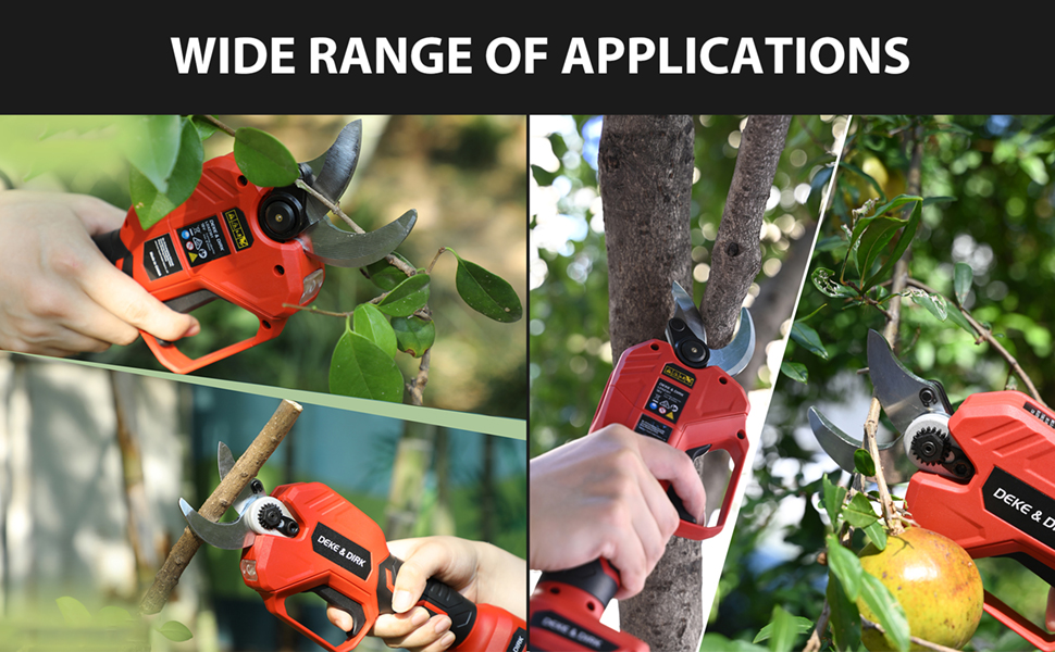 【تستخدم على نطاق واسع】تتميز مقصات التقليم التي تعمل بالبطارية بمجموعة واسعة من الاستخدامات، ويمكن استخدامها في الحدائق والمتنزهات والمزارع والمراعي والبساتين والدفيئات الزراعية وتقليم الفروع في الفناء الخاص بك، والعناية بالزهور والنباتات وقطع العنب وأشجار الكرز وأشجار التفاح وما إلى ذلك.