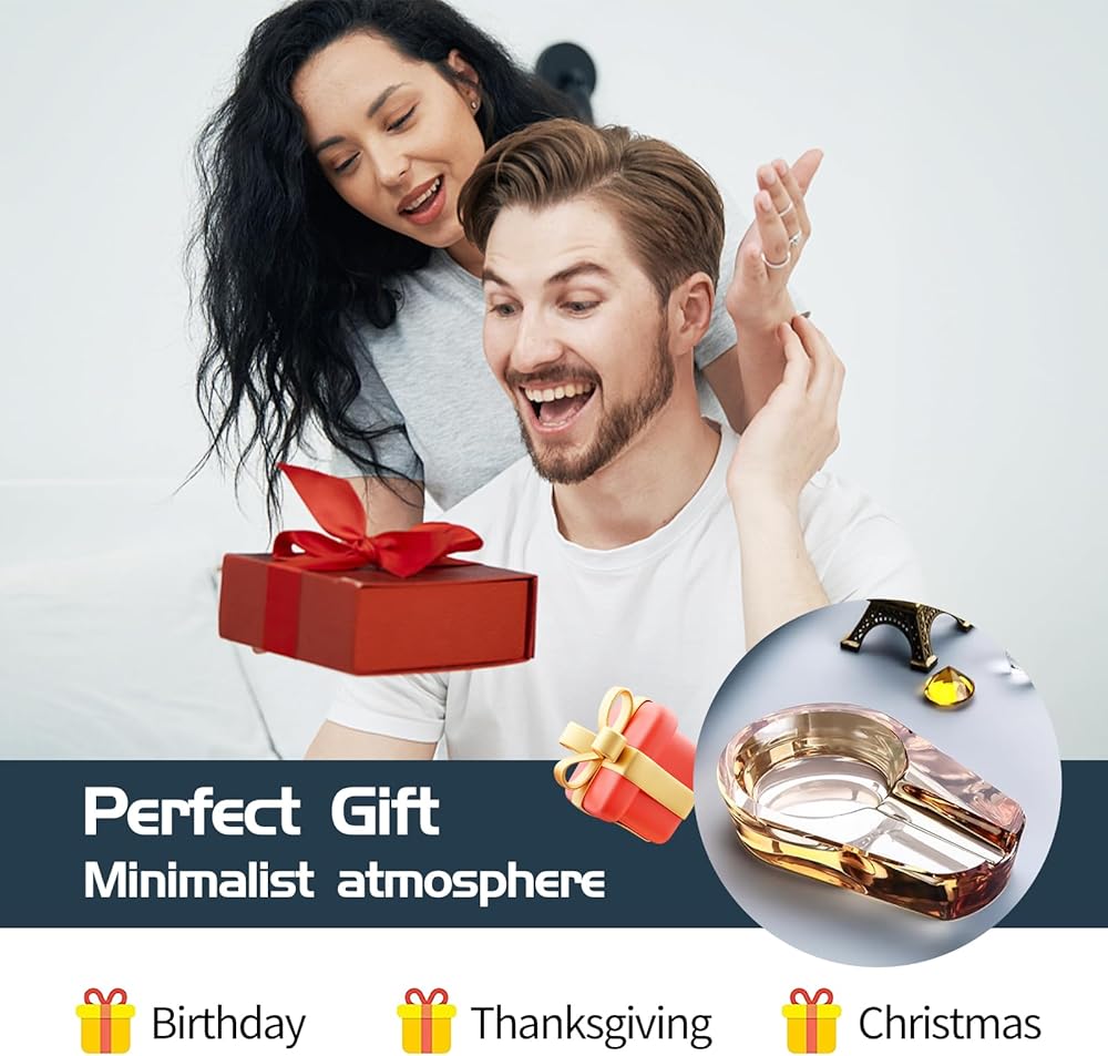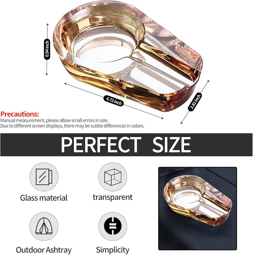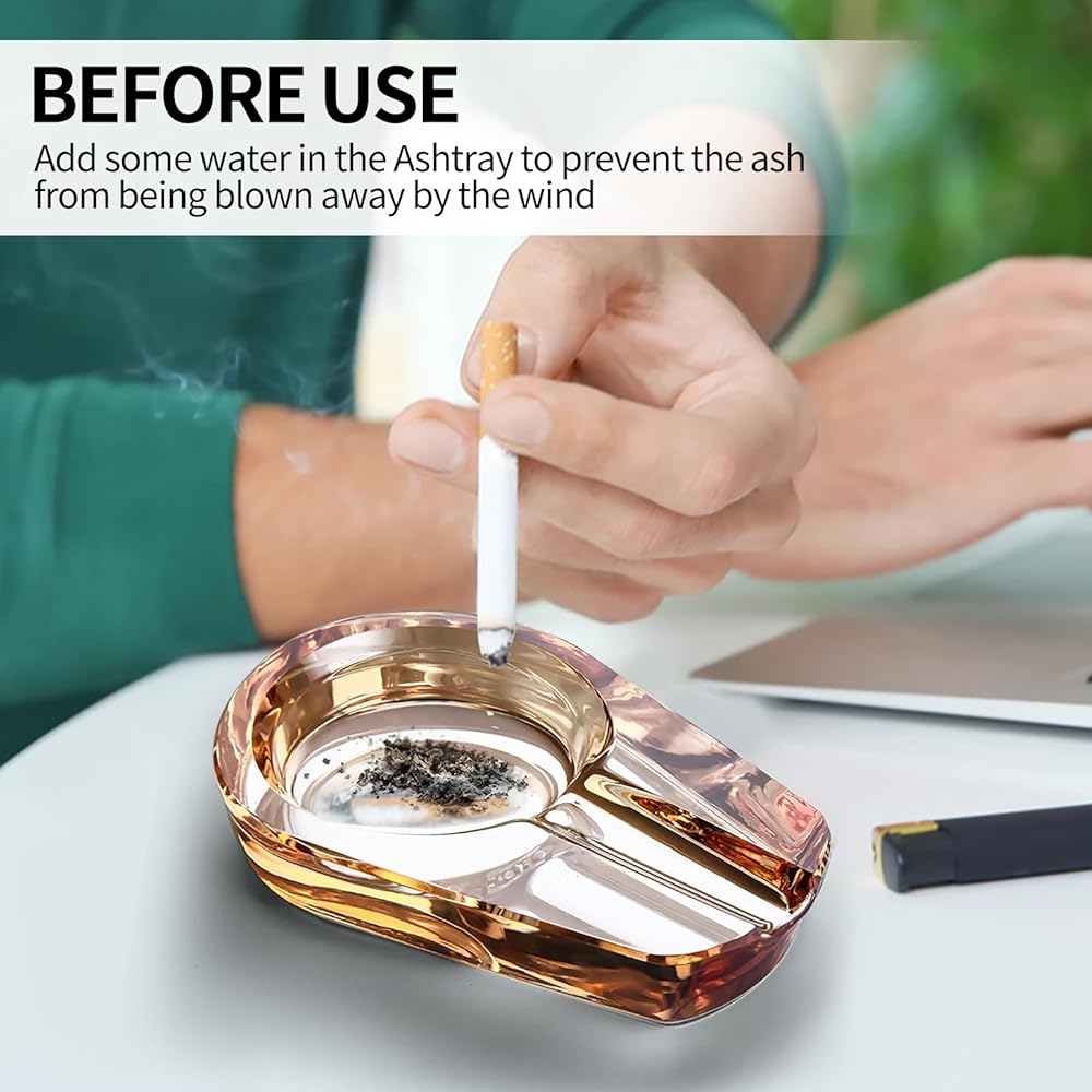 【MATERIAL】- Glass ashtray made of top K9 glass; The groove fits perfectly with the cigarette; Smooth and round, strong and beautiful, heavy and durable, easy to clean, and will never scratch your hands;