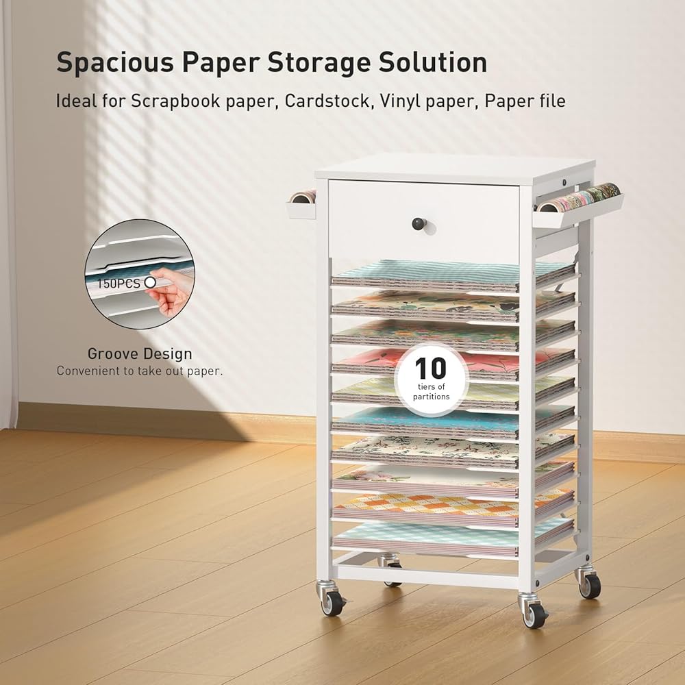 منظم الورق ذو 10 طبقات: يمكن لمنظم الورق ذو 10 طبقات استيعاب ما يصل إلى 2000 ورقة من ورق القصاصات مقاس 12 × 12 بوصة. يمكن تصنيف سجل القصاصات بطريقة منظمة، مع عدم وجود عائق بصري على جميع جوانب الرف، مما يسمح بالوصول والاسترجاع السريع والمريح، مما يحسن كفاءة العمل
