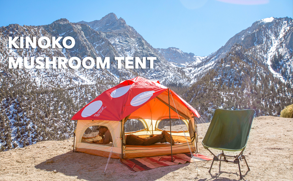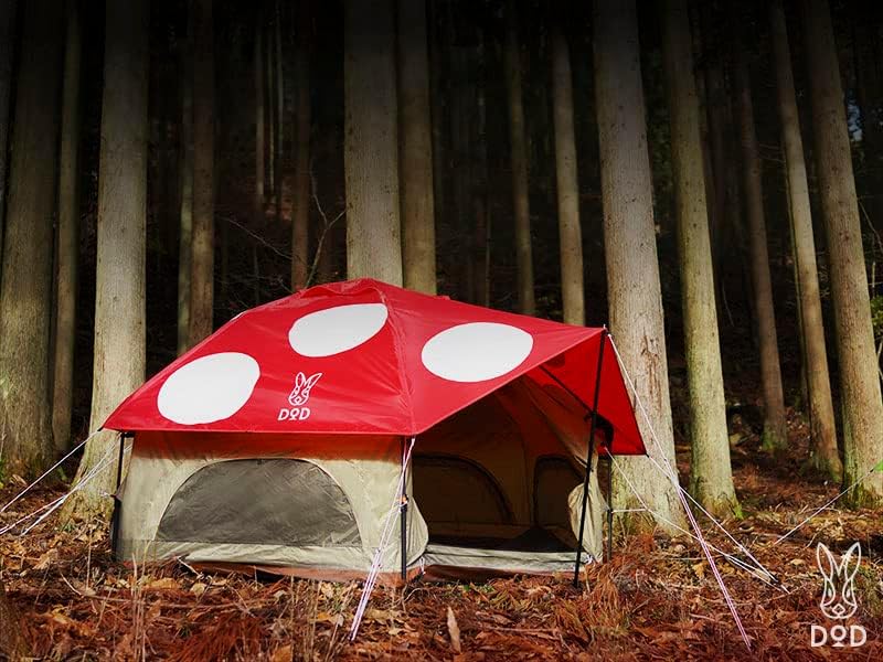 DOD Kinoko Mushroom Tent - 4 Season Festival Tent - 2 Person Instant Setup 1-Pull Camping Tent - Waterproof Dome Tent with Vertical Walls and Mesh Ventilation - Red