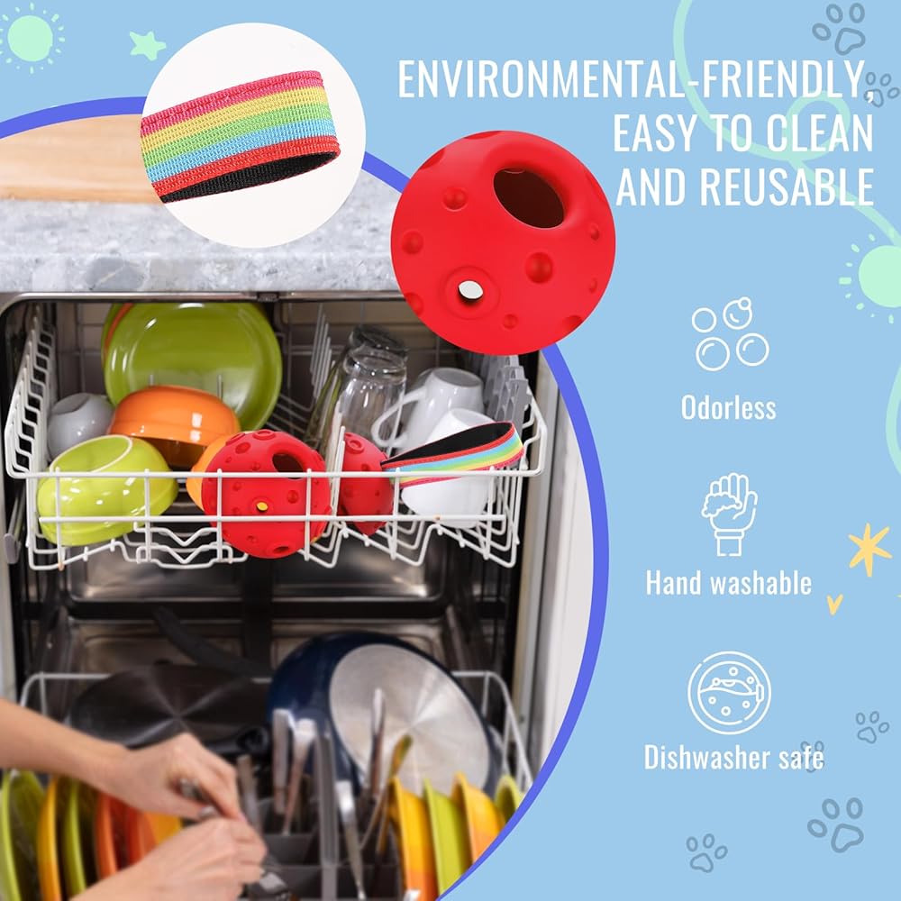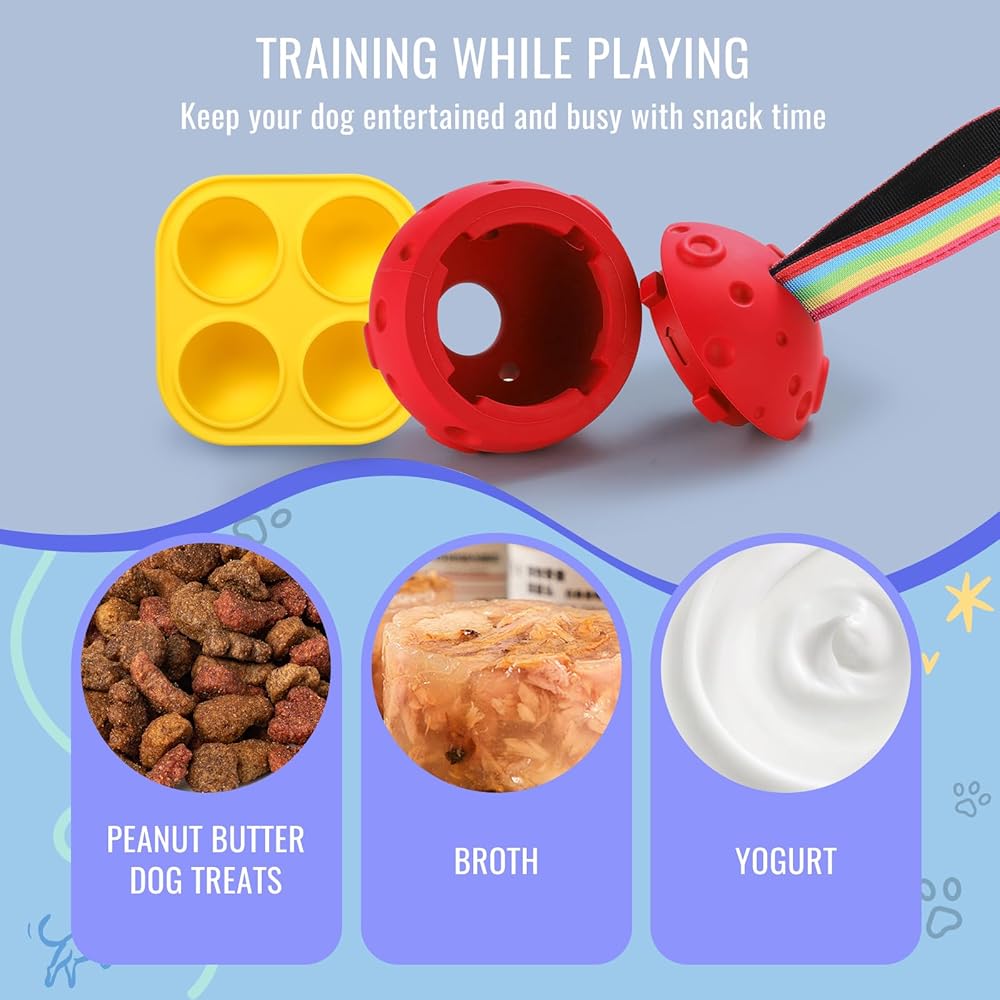 • [سهل الاستخدام والتنظيف] —— قم بتدوير الغطاء العلوي وفتحه، ووضع طعام الكلب المجمد في الكرة، ثم قم بمحاذاته لأعلى ولأسفل وقم بتدويره لقفله لبدء اللعب. بعد اللعب، اشطف الكرة مباشرة في الماء أو ضعها في غسالة الأطباق.