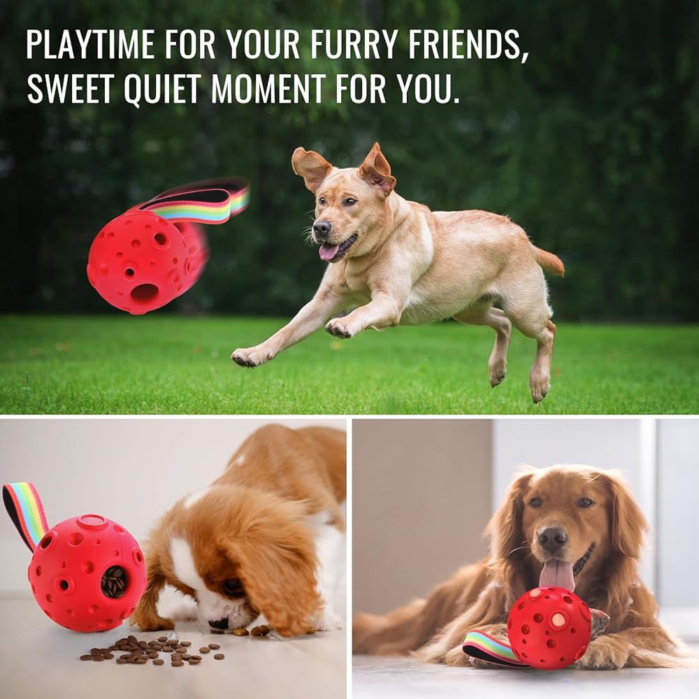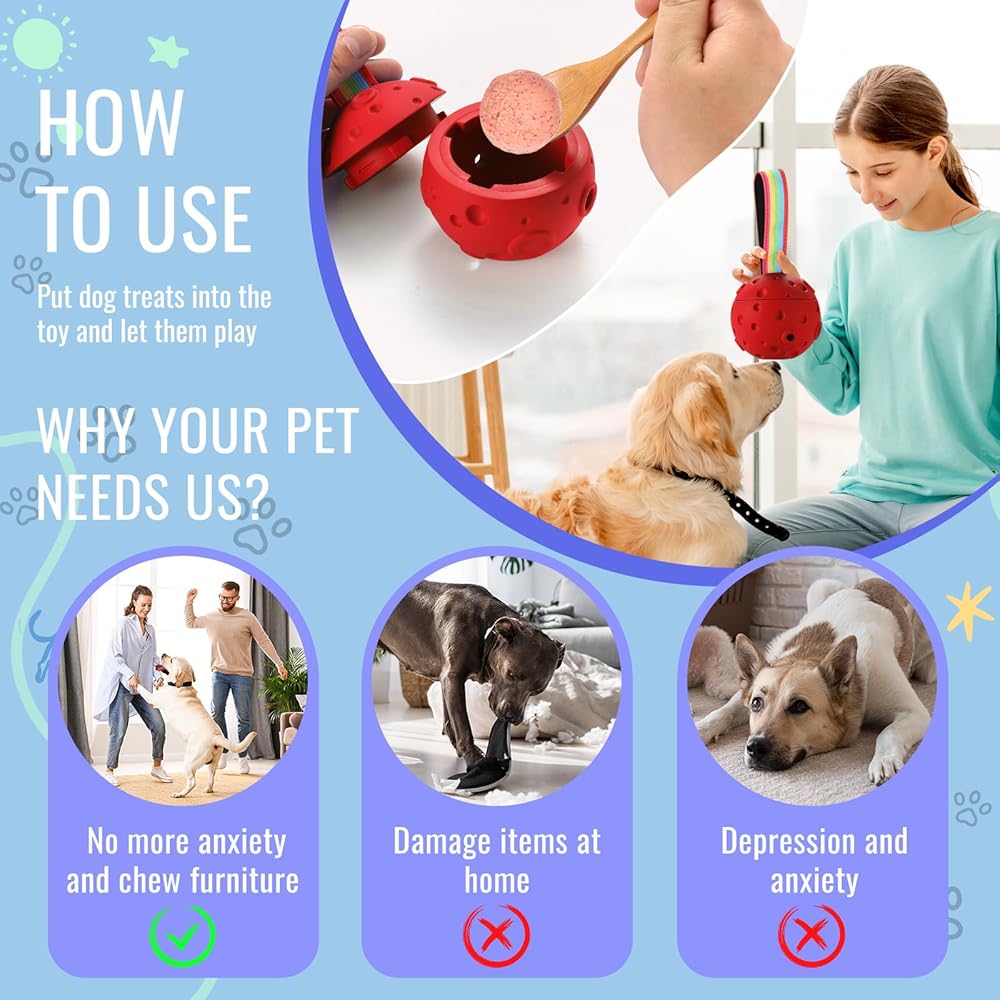 • [تصميم مظهر فريد] —— الفتحات الدائرية ذات الأحجام المختلفة الموجودة على السطح الخارجي للكرة تذكرنا بالنيازك. هذه الفتحات ليست مريحة للأشخاص للإمساك بها فحسب، بل أيضًا فتحتان أكبر قليلاً و3 فتحات أصغر يمكن أن تسرب الطعام وتسمح للكلاب بالحصول عليه.