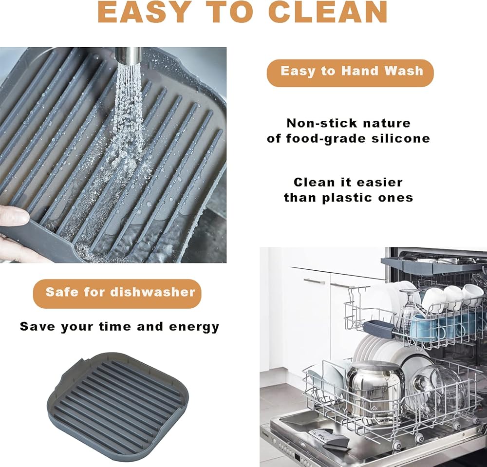 • سهل التنظيف: فقط ضع جهاز طهي لحم الخنزير المقدد في غسالة الأطباق أو اغسله يدويًا بالصابون والماء الدافئ. لن يلتصق الطعام بصينية لحم الخنزير المقدد في الميكروويف بسبب الطبيعة غير اللاصقة للسيليكون المخصص للطعام، مما يجعل تنظيفه أسهل من البلاستيك. بالإضافة إلى ذلك، فإن المقابض الكبيرة المريحة للغاية تجعل من السهل إزالتها من الميكروويف