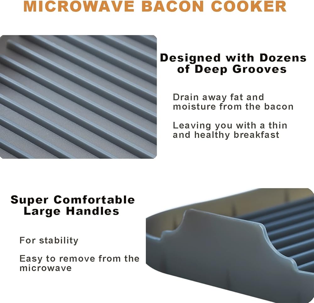 جهاز طهي لحم الخنزير المقدد من جيلمو لفرن الميكروويف، صانع لحم الخنزير المقدد في الميكروويف، صينية لحم الخنزير المقدد المصنوعة من السيليكون الملائمة للطعام، رمادي