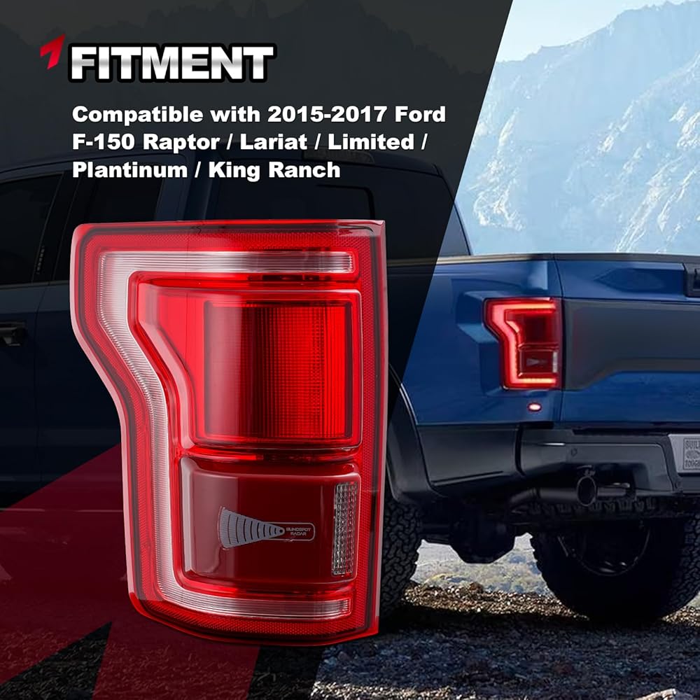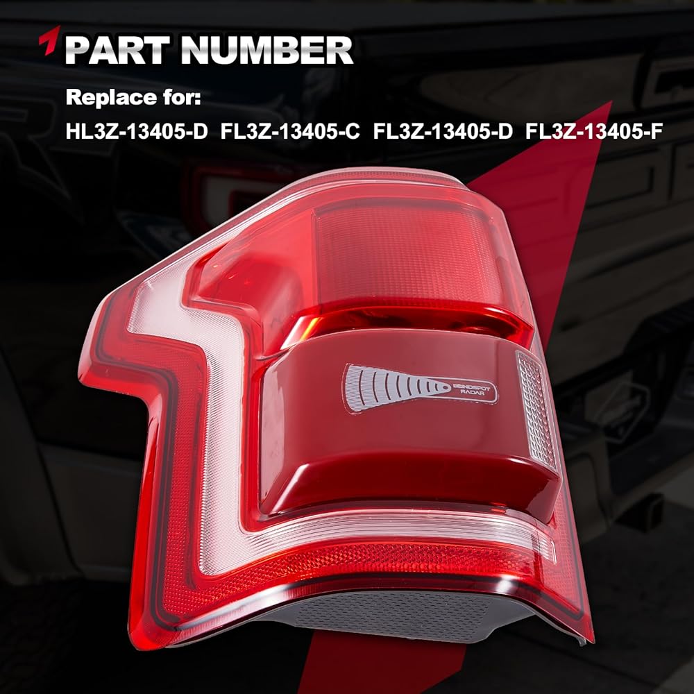 مجموعة مصابيح LED F150 2015-2017 مع شاشة تنبيه النقطة العمياء المتوافقة مع Ford F-150 Raptor Lariat Limited Platinum King Ranch لاستبدال HL3Z13405D (جانب السائق الخلفي الأيسر)