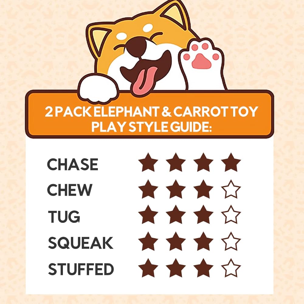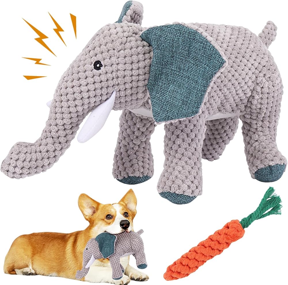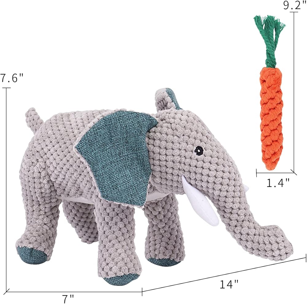 Squeaky Plush Large Dog Toy & Cotton Rope Chew Toy Kit, Cute Elephant Stuffed Toy and Carrot Teething Tug of War Rope Knot Toy Set for Small Medium Large Breed Holiday Birthday Gift (2 Pack)