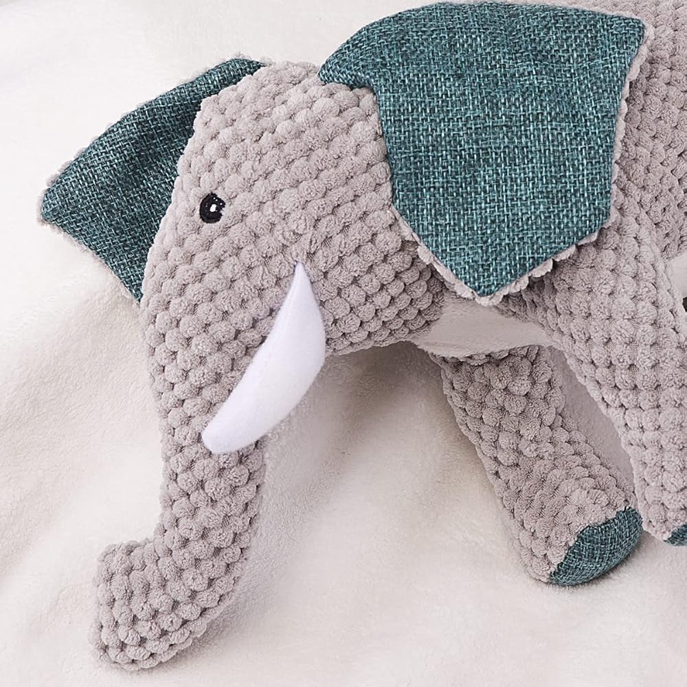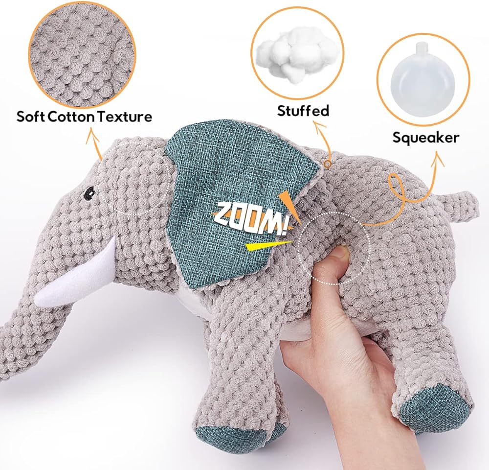 [Elephant Squeaky Toy] the toy is stuffed with soft cotton and made with checkered-textured plush that are perfect to cuddle with. The immediate auditory feedback of the built-in squeaker encourages hours of play.
