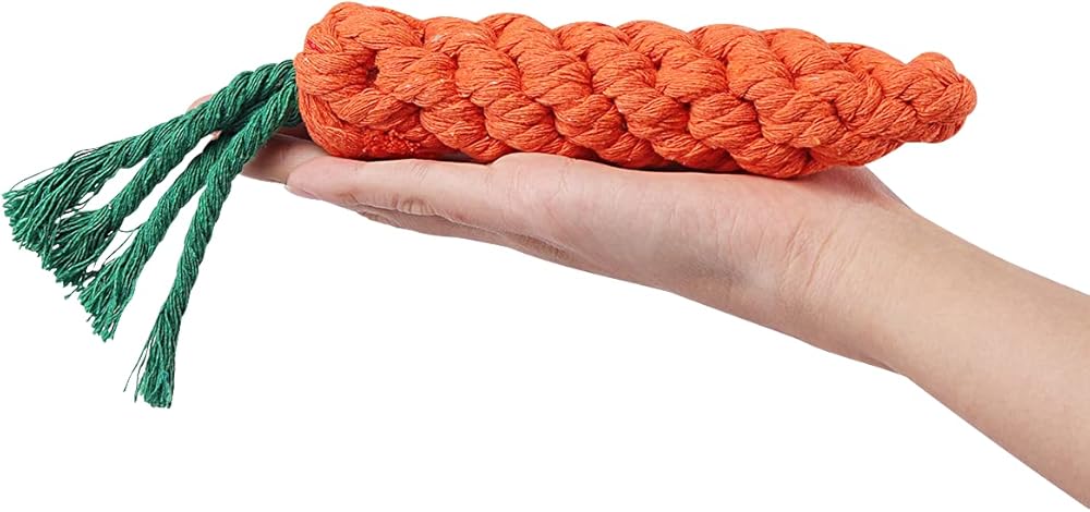[Carrot Rope Toy] the no stuffing cotton knot rope serves as a fun toy to satisfy dogs natural hunting instinct and chewing behavior. Great for teething, gum massaging, dental cleaning and playing tug-of-war.