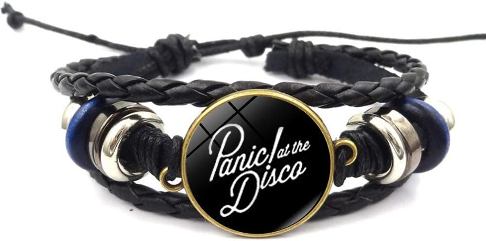 الذعر القمر! سوار من الجلد المنسوج يدويًا بشعار فرقة الديسكو مزين بسلسلة من البانك