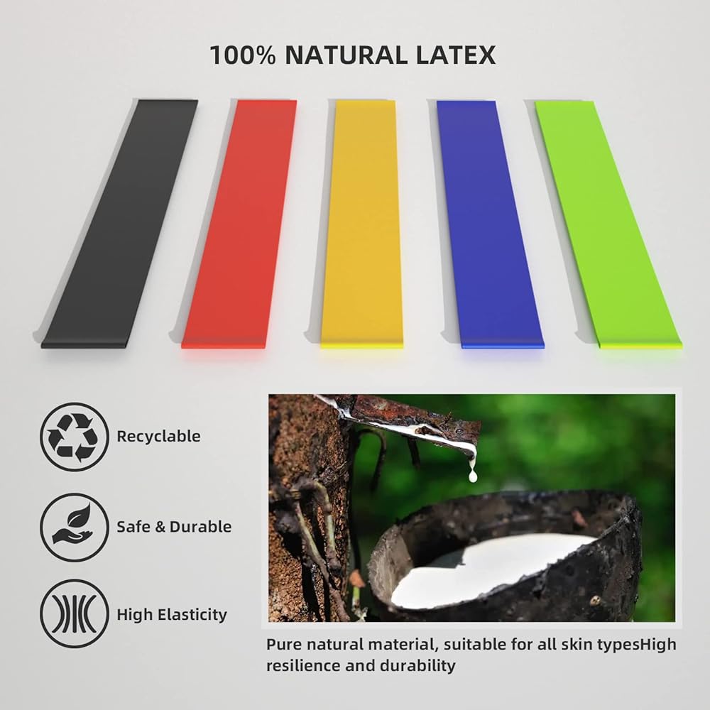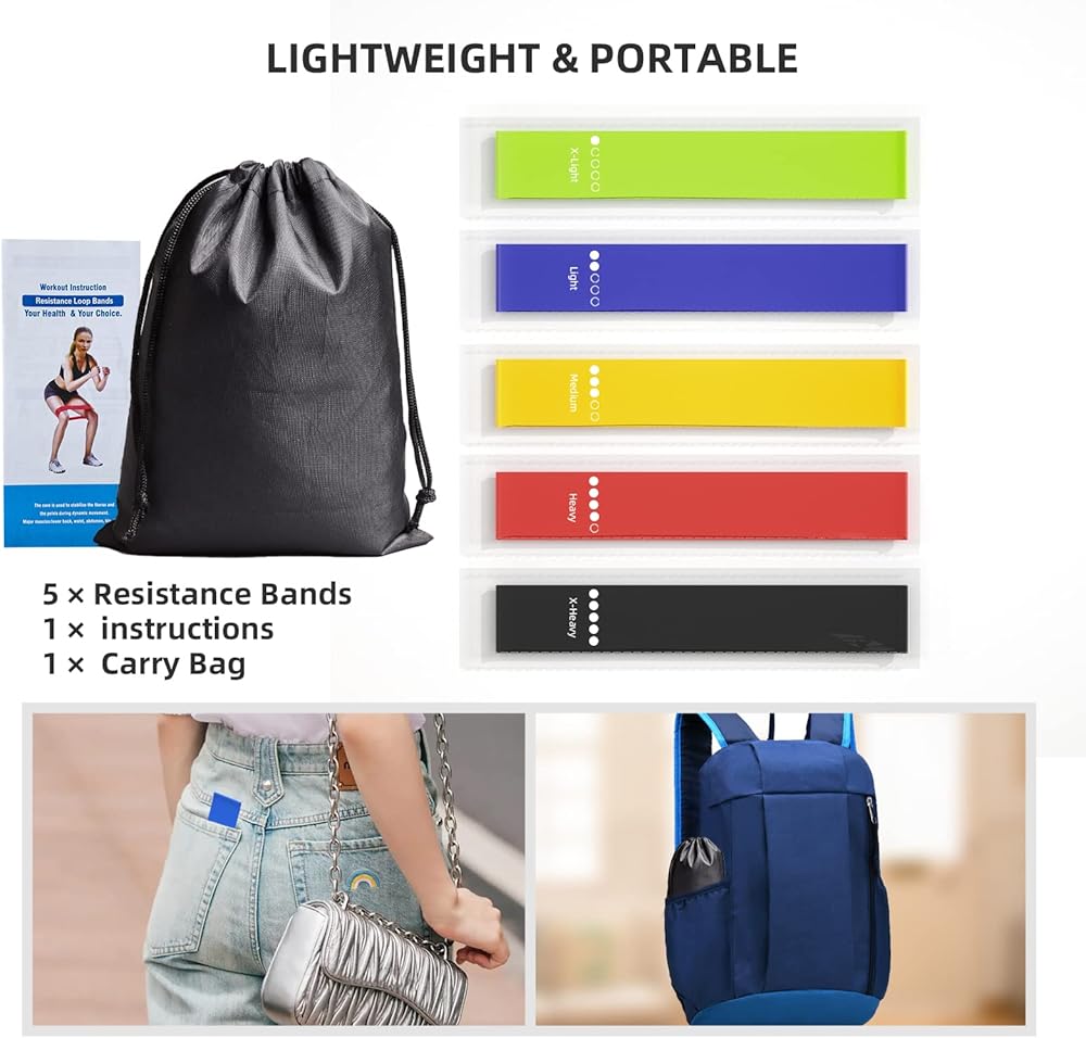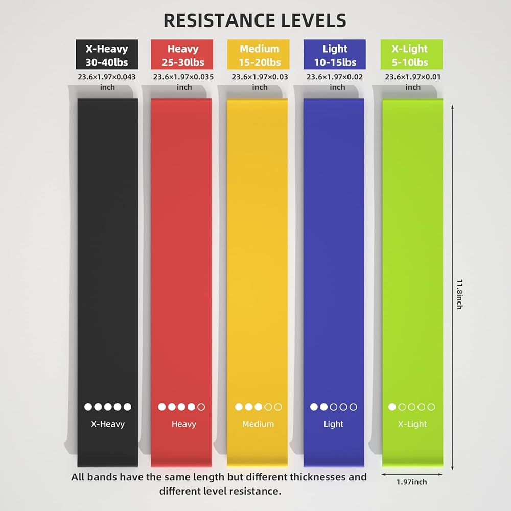 أربطة مقاومة، أربطة دائرية للتمارين الرياضية للساقين والأذرع، 5 مجموعات من الأربطة المرنة بمستويات مقاومة مختلفة للنساء والرجال لليوجا وصالة الألعاب الرياضية والتدريب، مع حقيبة حمل ودليل تعليمات